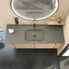 A full-length washbasin gives you the opportunity to create a bathroom with a stylish and cohesive design. When you choose a basin that blends in with the worktop, you create a harmonious look that makes the space calm and inviting. Keep in mind that our full-length washbasins are available in standard dimensions, but you can also customise your moulded washbasin to fit the exact dimensions of your bathroom. To achieve a cohesive style in the bathroom, it's important that you think about the colour scheme. Should the vanity unit be in the same shade as the basin or do you prefer a contrasting colour? Also, look for fittings and mirrors that complement the design and colours of the basin and carefully consider the lighting above the basin as it can both highlight the texture of the materials and create a luxurious atmosphere in the bathroom.