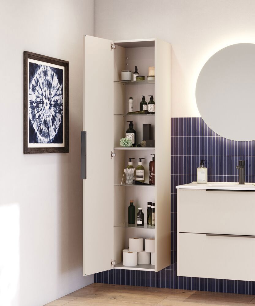 You can also choose a tall cabinet for your bathroom. A tall cabinet gives you plenty of storage space and is available in different depths and widths so you can find the model that suits your needs. You can also use the space above your tall cabinet for beautiful flowers or decorations to add a little extra atmosphere to your bathroom.