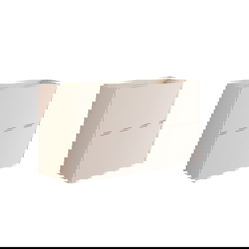 The difference between a base cabinet and a vanity unit is that a base cabinet doesn’t have waste cut-outs for a basin. This is important when designing and putting together your bathroom. When you put your base cabinet together with a vanity unit you'll either need to choose a worktop and a countertop basin or have your basin customised to fit over your furniture. You can read more about customised solutions right here.
