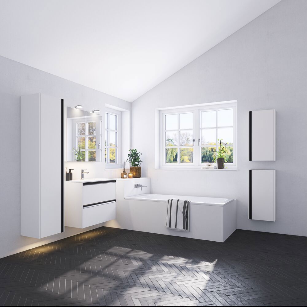 If you have a smaller bathroom you might think that you don't have room for a tall cabinet. But with our wide range of depths and dimensions of tall cabinets you're sure to find one that will fit in your bathroom – even a short projection model is big on storage space. Be creative, think outside the box and you'll be able to make full use of the area and gain extra storage space.