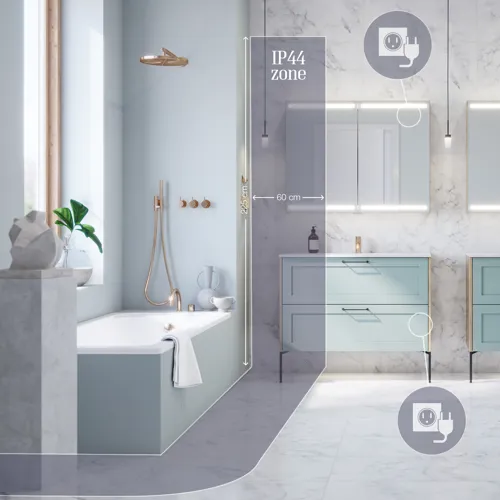 The light colour has quite a big impact on how your bathroom feels. To create natural and pleasant lighting it is recommended to choose a colour temperature between 3000K and 4000K. This gives a bright but not too cold light.