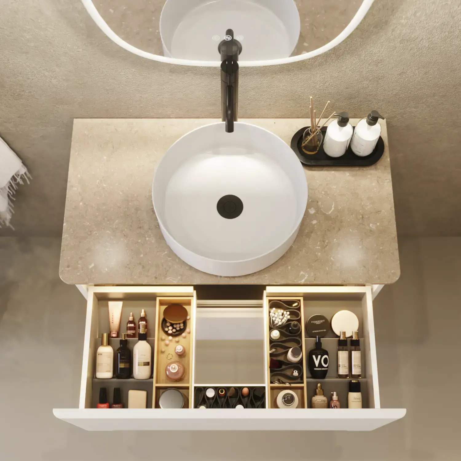 Handles are no longer just functional – in 2026, they are key design elements. Warm metal finishes and natural wood handles bring character and individuality to your bathroom, turning small details into a meaningful expression of style.