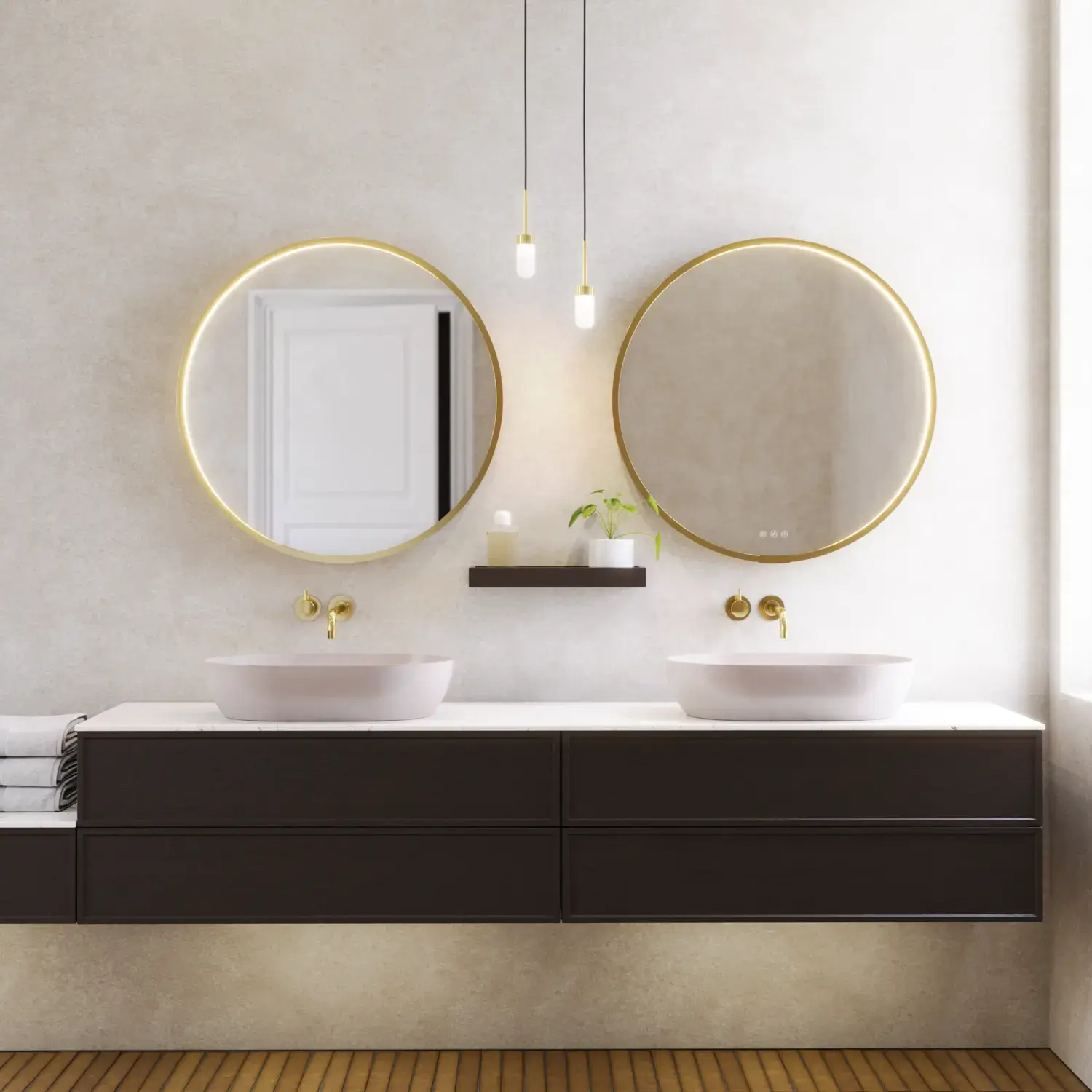 - Select a mirror with rounded edges to create a calming focal point in your bathroom.