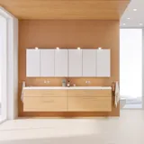 Our mirrors come in widths up to 160cm but if you want even more space in front of the mirror you can build up a whole wall of mirrors by installing mirror cabinets. As an extra bonus you get additional storage space into the bargain.