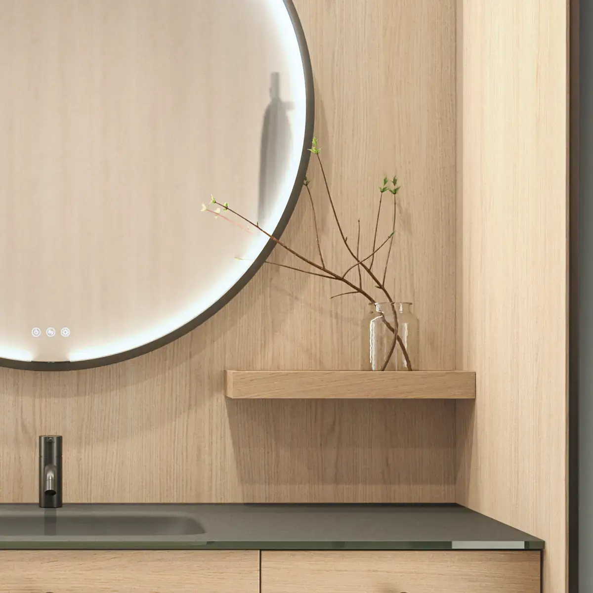 We love natural wood – from light types of wood to darker tones. Nordic decoration is light and open, with lightweight, functional furniture and beautiful, simple details. Adding natural wood to your design creates images of untamed Scandinavian scenery, and brings liveliness to the bathroom. We have wooden decors in several of our ranges, but Calidris in particular stands out in this area. All Calidris wooden elements are over-veneered on solid oak edges, and this provides uniform quality with a more beautiful, natural grain and texture. Read more about oak veneer in Calidris.