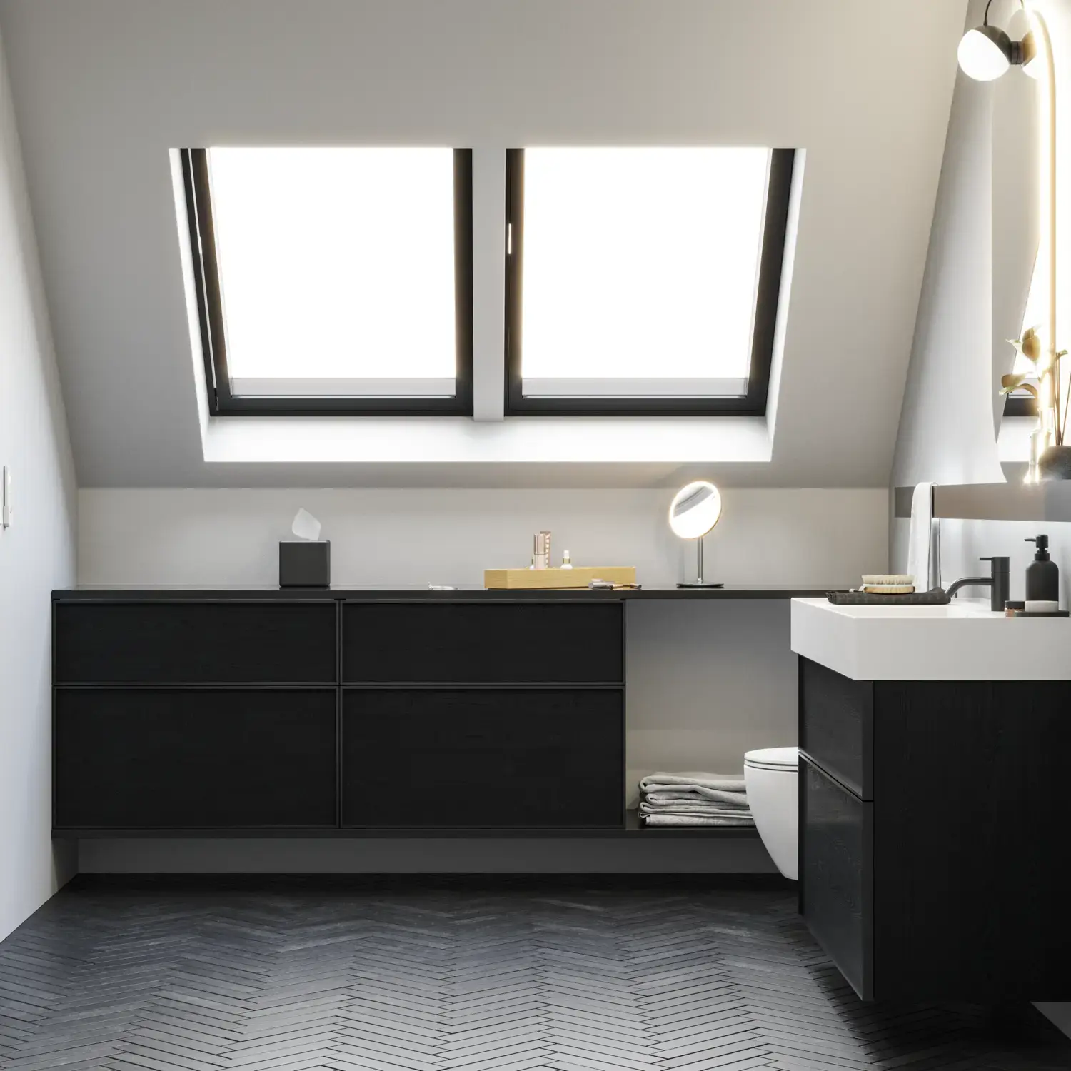 Even if a sloping ceiling or off-square angles have bothered you in your existing bathroom you can still have a comfortable new bathroom. With custom-made worktop solutions, offset basins, round mirrors, floating shelves and more, there are lots of ways to fully utilise the space. It doesn’t have to cost a fortune, either.