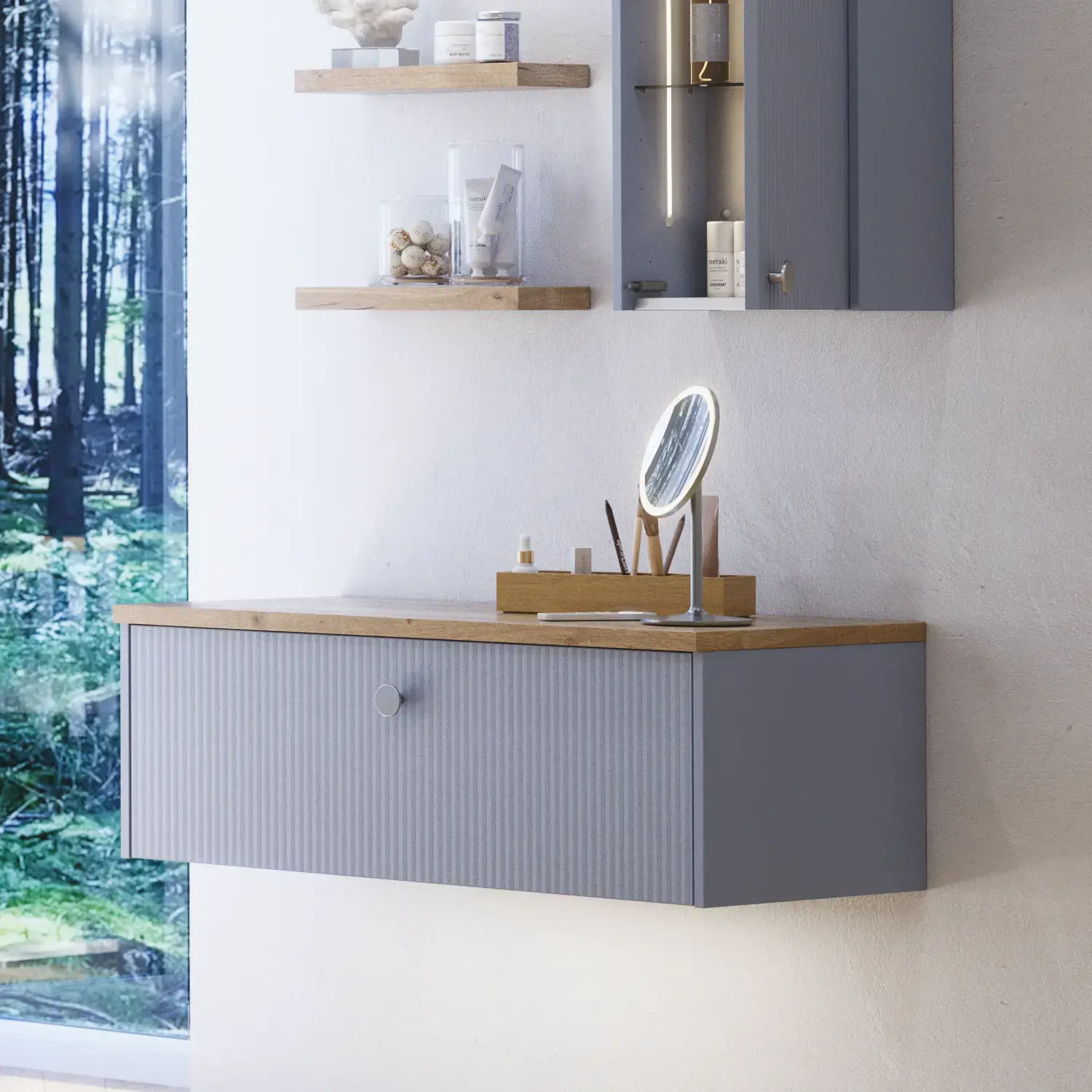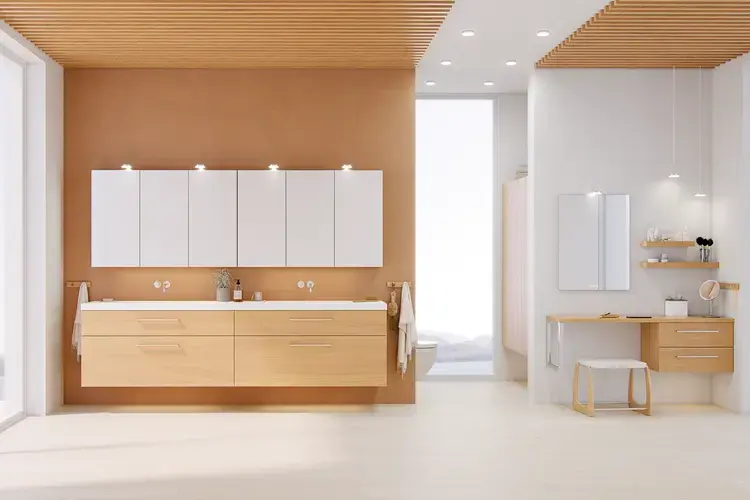 Are you more into ”natural” materials? You can bring the living world into your bathroom with different wooden surfaces. Choose light wooden decors such as Nordic oak, natural oak or light oak if you wish to create a light Scandinavian style. Or using golden- and reddish-brown wooden finishes such as brown oak, ash grey or warm oak can create a nice warm atmosphere. Darker colours such as dark oak & oak noir express classical elegance and guarded style.