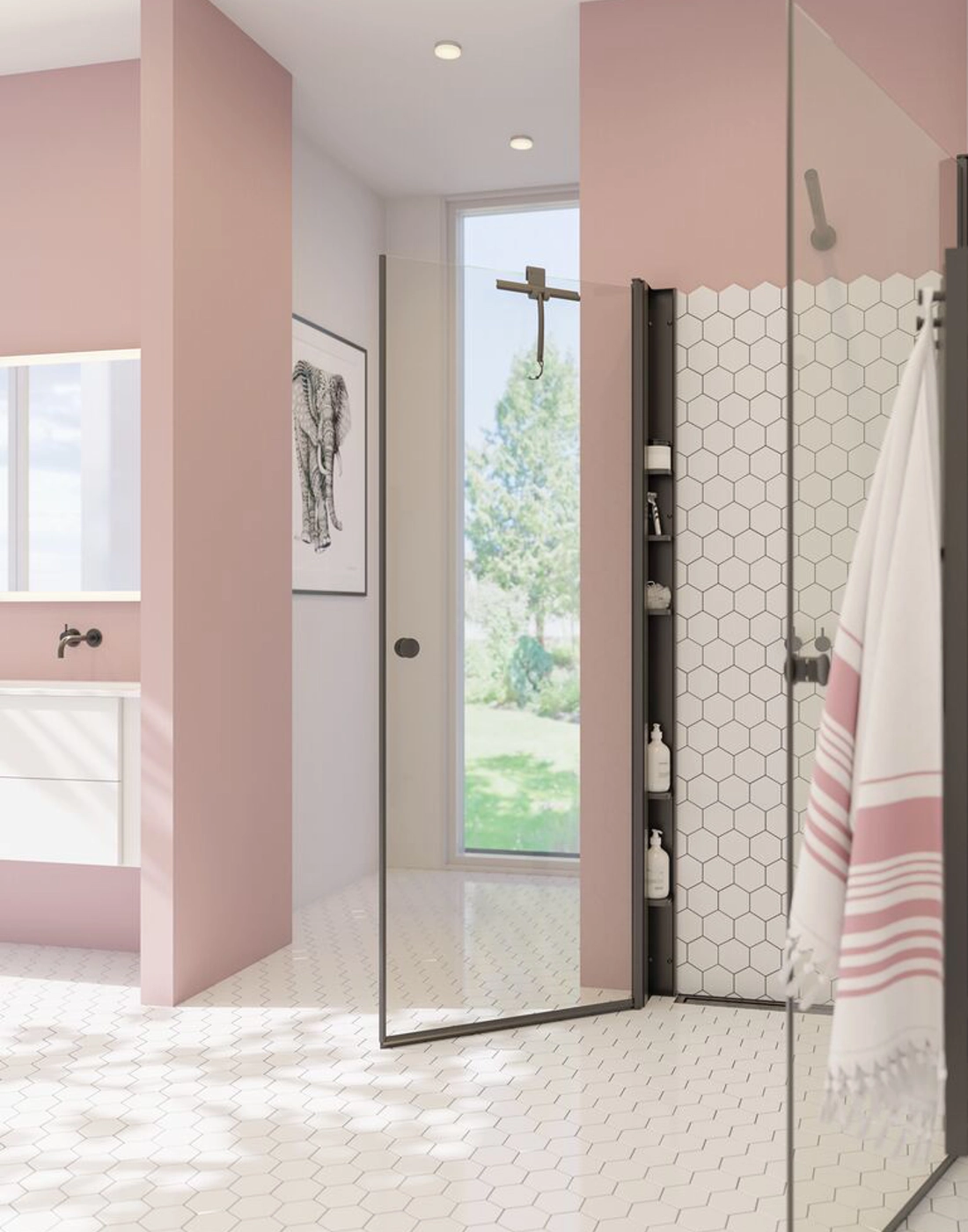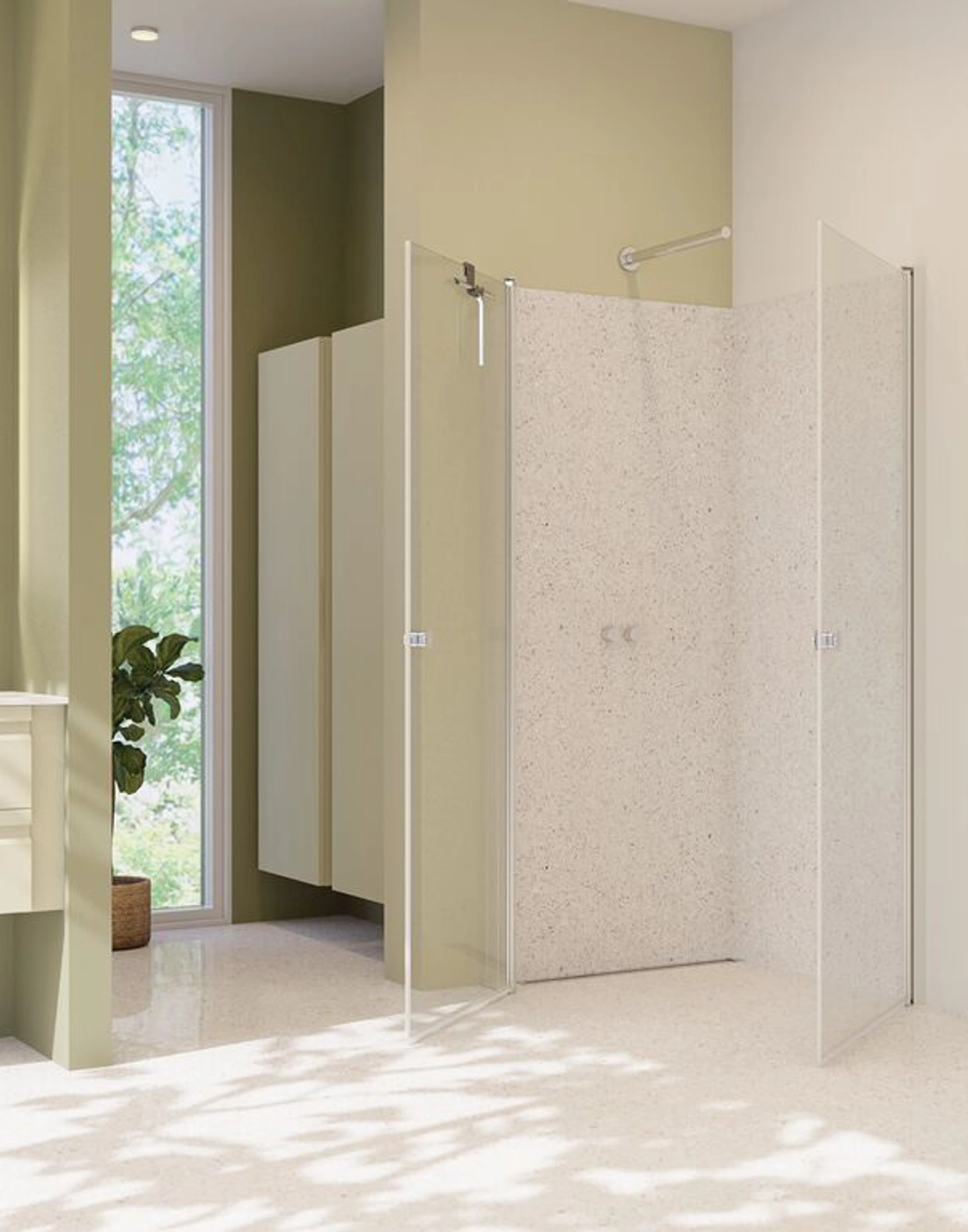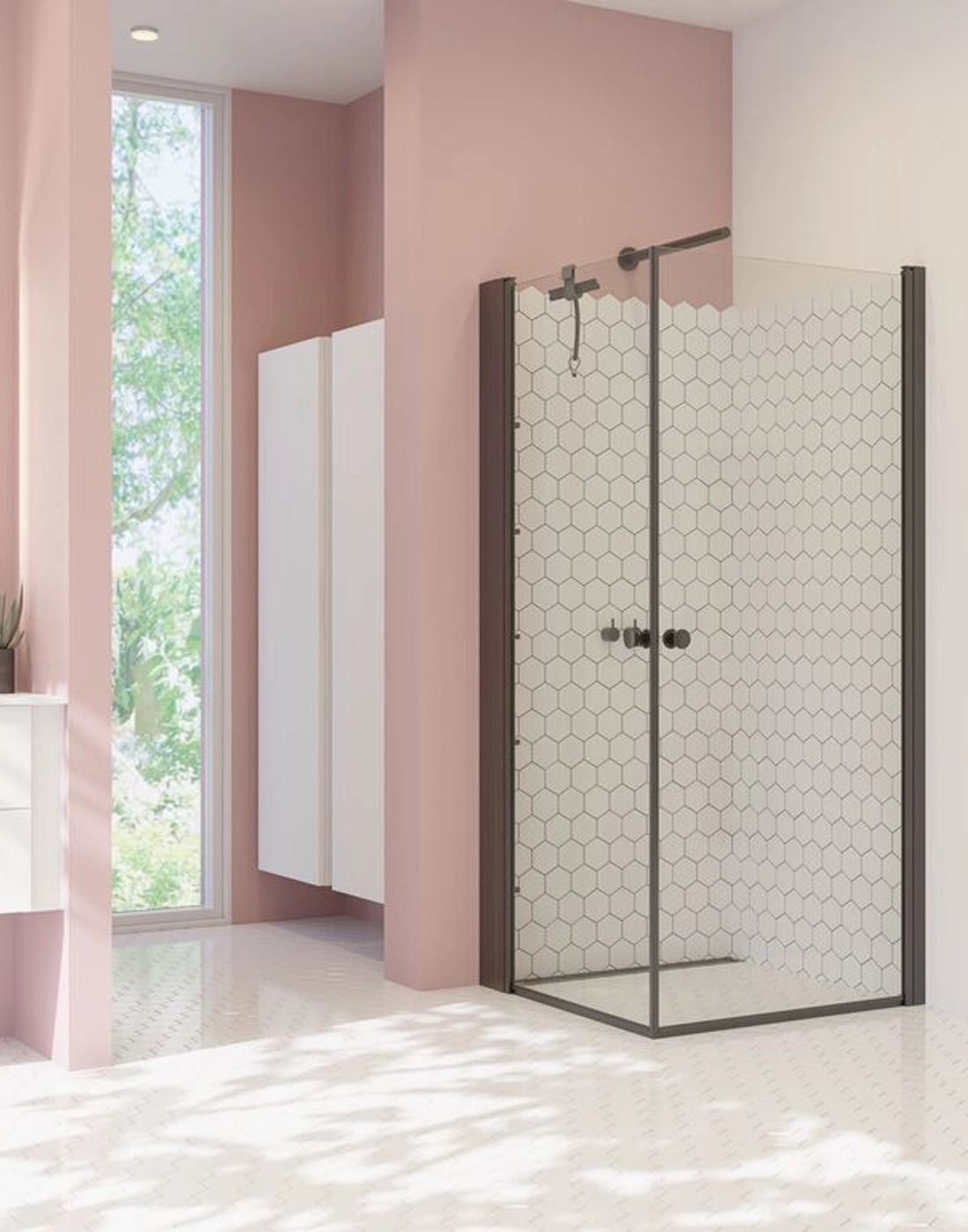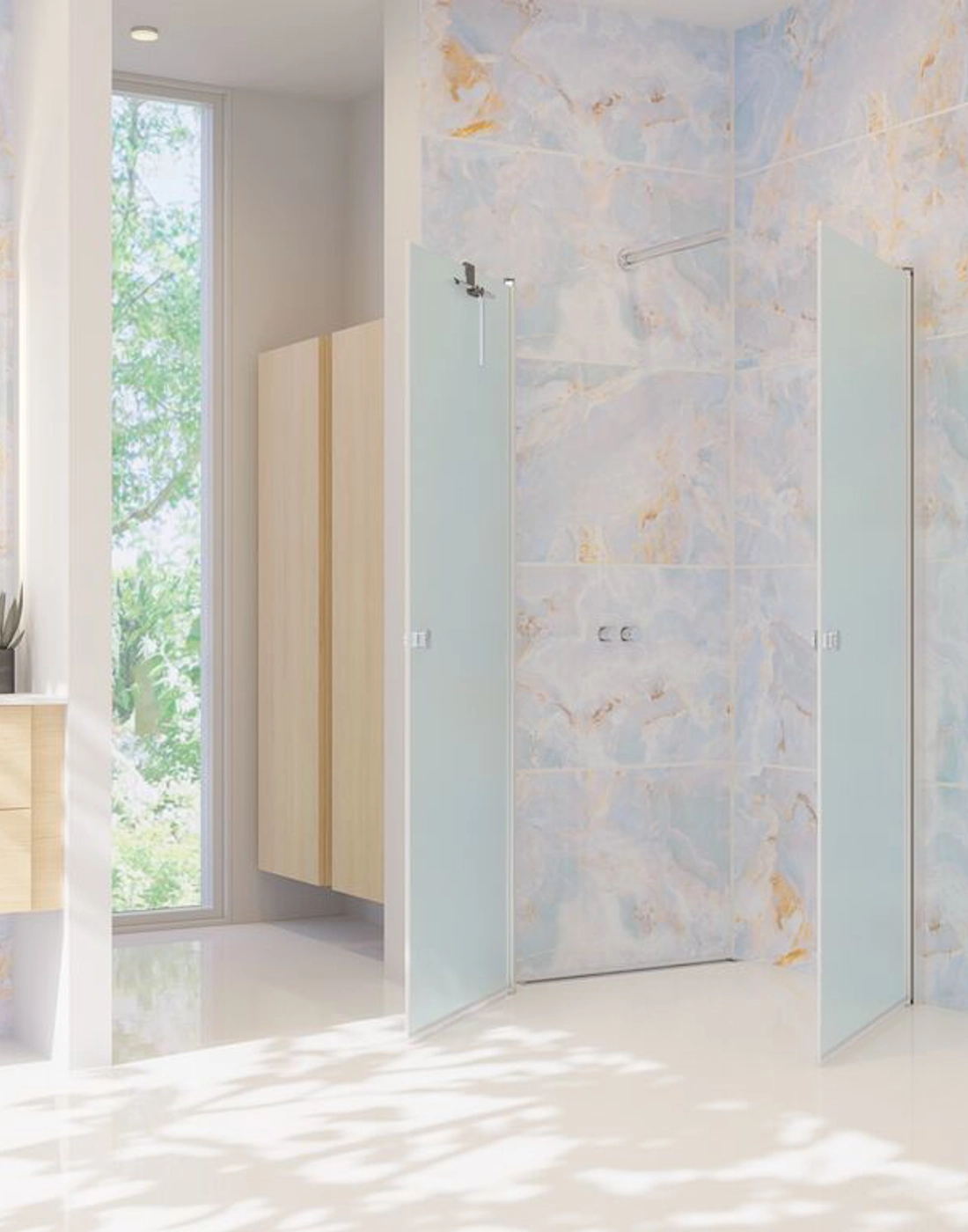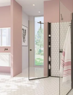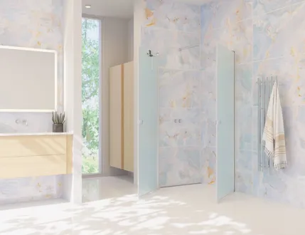 The hinged doors bring both elegance and functionality to your bathroom. The doors are extremely practical and user-friendly, as they can be opened both inwards and outwards. This allows you to free up space in your bathroom when the shower is not in use. The swing doors open and close easily and silently on durable hinges, ensuring easy access to the shower. At the same time, they provide an effective screen to keep water inside the shower area and keep the rest of the bathroom dry and clean. The tempered glass in the doors is treated with EasyCare, extending the durability and lifespan of your swing doors.