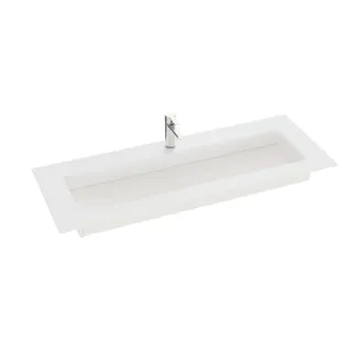 With the Angular basin, you not only get an elegant and angular design but also the opportunity to have a basin that fits perfectly into your bathroom. The basin can be customized to your exact measurements, meaning it can be tailored to meet your needs and the dimensions of the room. This flexibility makes Angular the ideal choice when you want a basin that is both functional and seamlessly integrates into your bathroom decor. The basin was developed in collaboration with Cosentino and is available in both the classic Silestone finishes and the new, sustainable Trilium finish in Dekton. Trilium stands out with its raw, tile-like appearance and is made from up to 80% recycled material, giving the basin an additional eco-friendly touch. The elegant design philosophy includes a sloped basin that directs water efficiently to a hidden drain, resulting in a stylish and practical design. The Silestone and Dekton materials are not only beautiful but also sustainable, as they are produced with renewable energy and recycle 99% of the water used in production.