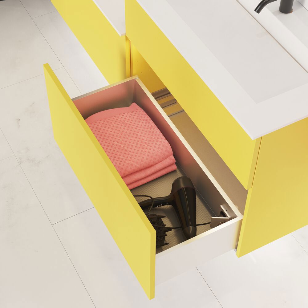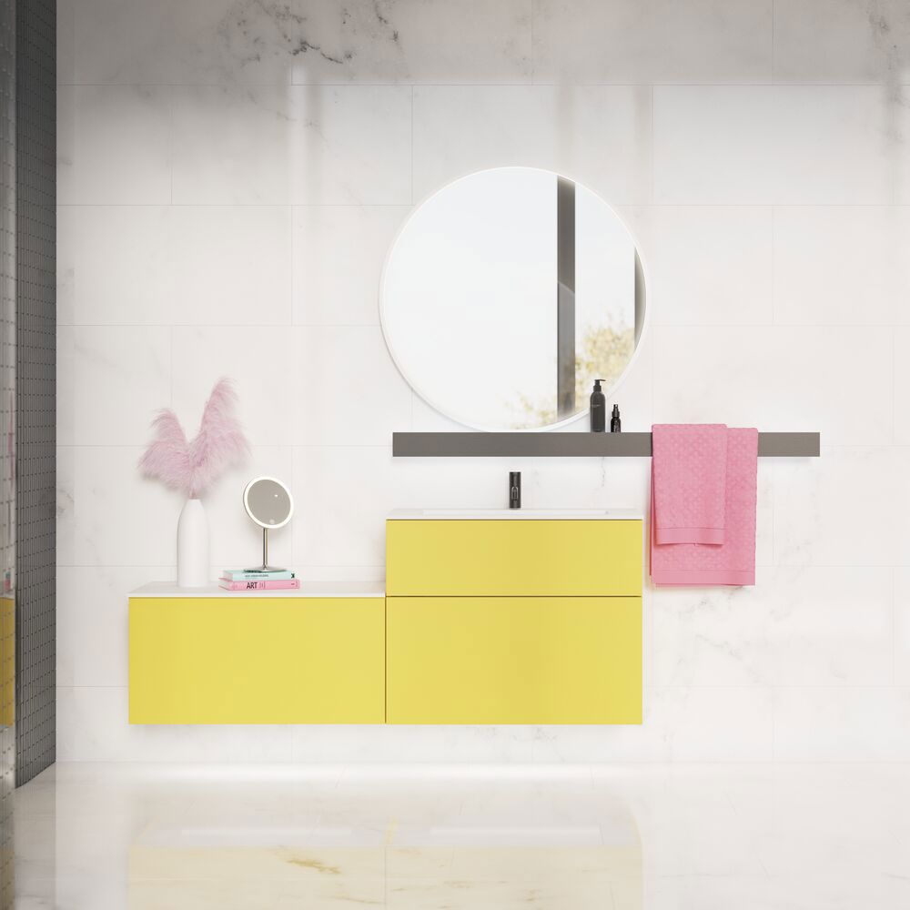 The Angular basin represents the perfect choice for modern bathrooms with its minimalist look and sharp, angular design. The basin was developed in close collaboration with Cosentino and is available in the popular Silestone finishes as well as the sustainable Dekton finish, Trilium. Trilium is known for its raw, industrial look and is made from up to 80% recycled materials, making it a responsible choice, both aesthetically and environmentally. The basin is made from pieces of stone that are bonded together to create an elegant and functional basin. The bottom of the basin is sloped to direct the water efficiently towards the narrow, hidden drain that spans the width of the basin, giving it a sleek and functional appearance. The Angular basin is an ideal solution for those who want both a beautiful and sustainable element in their bathroom, where design and function go hand in hand.