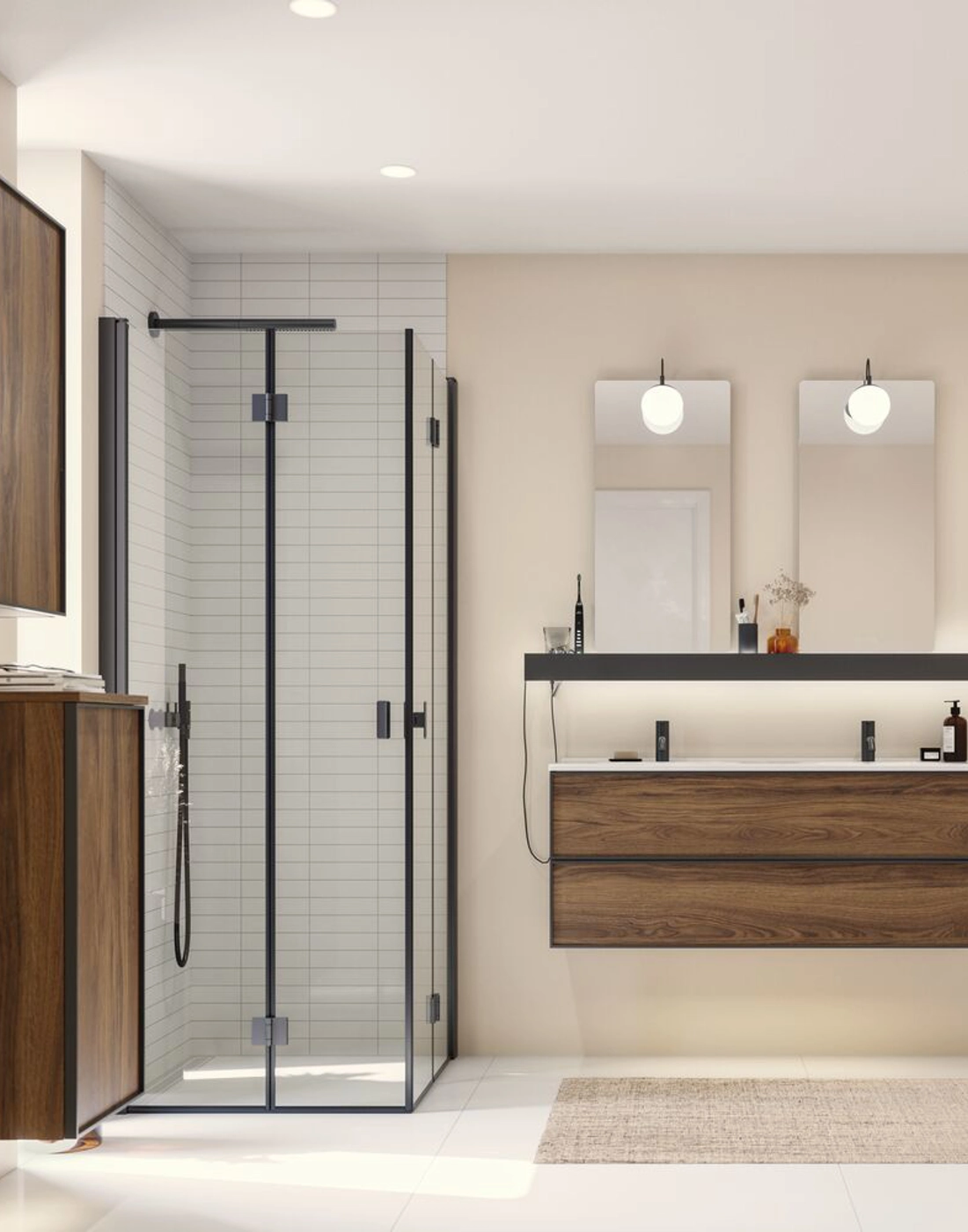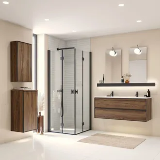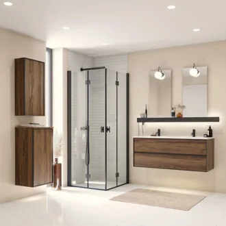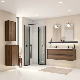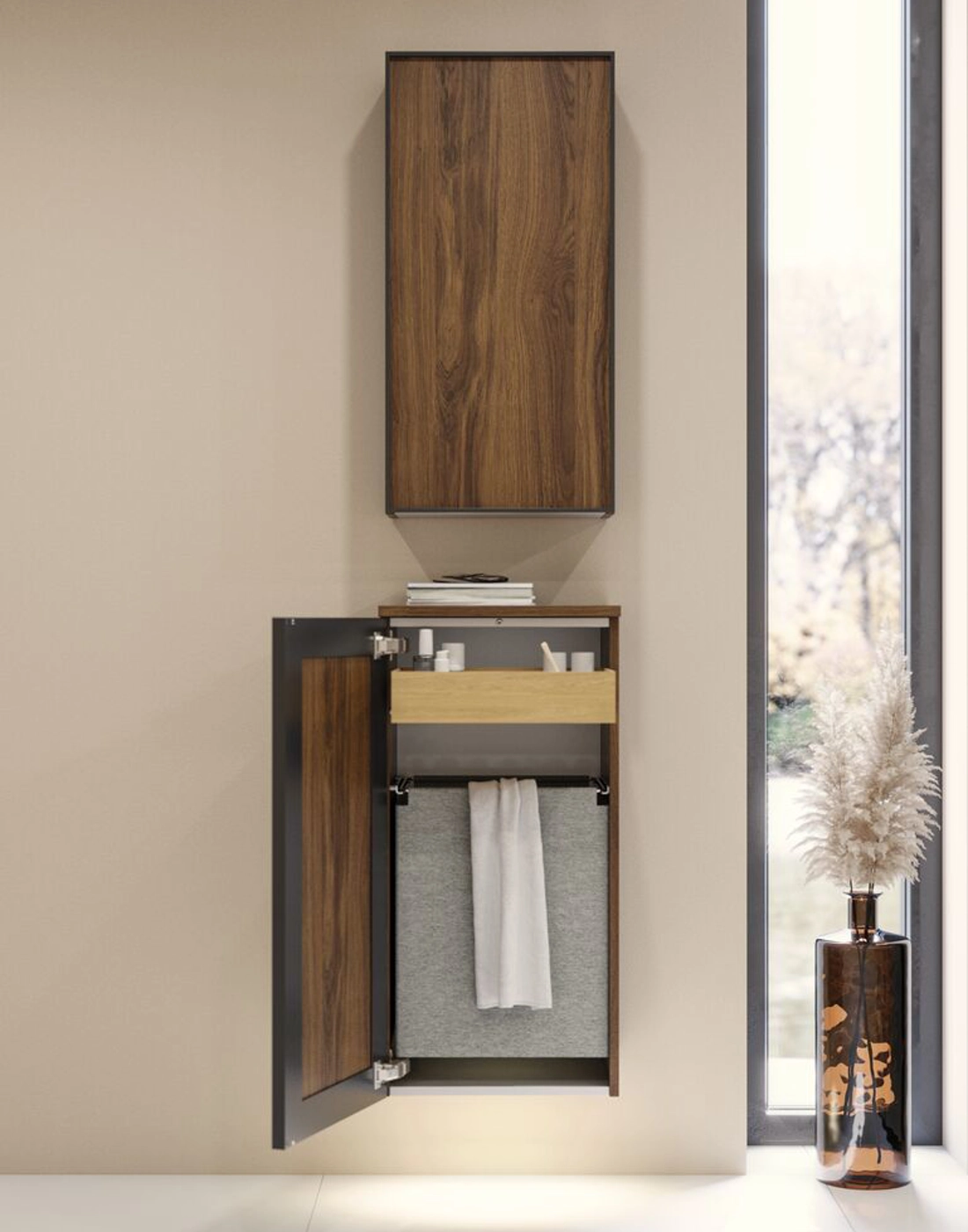 The base cabinet with a black frame in Version B offers a functional and stylish solution for your bathroom. With a width of 40 cm and a depth of 35 cm, this base cabinet is equipped with a pull-out tray and a laundry bag, making it ideal for storing both cosmetics and laundry. The black frame adds a modern edge to your bathroom, while the practical design ensures that everything remains organized and easily accessible. With this base cabinet, you can optimize your storage space and create a tidy environment where you can easily find everything you need. NB: There is a start-up fee (BI2) for products with bespoke colour. It is an one-off surcharge per bespoke colour regardless number of products. Remember to add the little practical things to your bathroom furniture that you will enjoy on a daily basis. For example, lights in drawers and cabinets, built-in electrical sockets and dimmed sensor lights under the furniture to guide night-time bathroom visits. Options are ordered at the same time as your furniture.