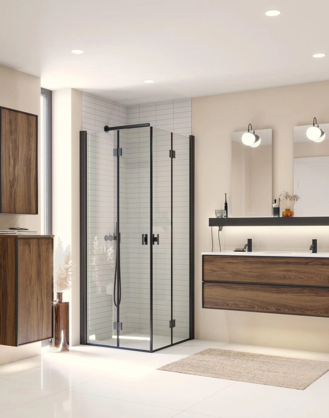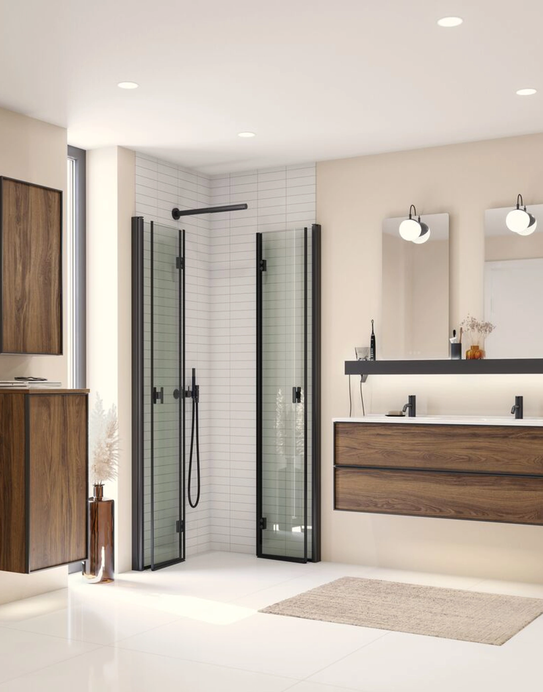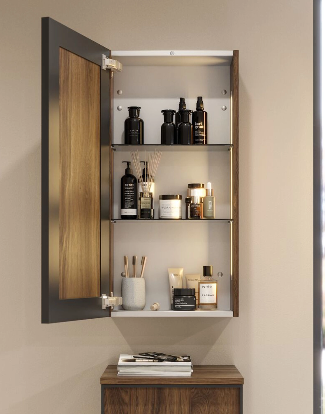 The base cabinet with a black frame in Version B offers a functional and stylish solution for your bathroom. With a width of 40 cm and a depth of 35 cm, this base cabinet is equipped with a pull-out tray and a laundry bag, making it ideal for storing both cosmetics and laundry. The black frame adds a modern edge to your bathroom, while the practical design ensures that everything remains organized and easily accessible. With this base cabinet, you can optimize your storage space and create a tidy environment where you can easily find everything you need. NB: There is a start-up fee (BI2) for products with bespoke colour. It is an one-off surcharge per bespoke colour regardless number of products. Remember to add the little practical things to your bathroom furniture that you will enjoy on a daily basis. For example, lights in drawers and cabinets, built-in electrical sockets and dimmed sensor lights under the furniture to guide night-time bathroom visits. Options are ordered at the same time as your furniture.