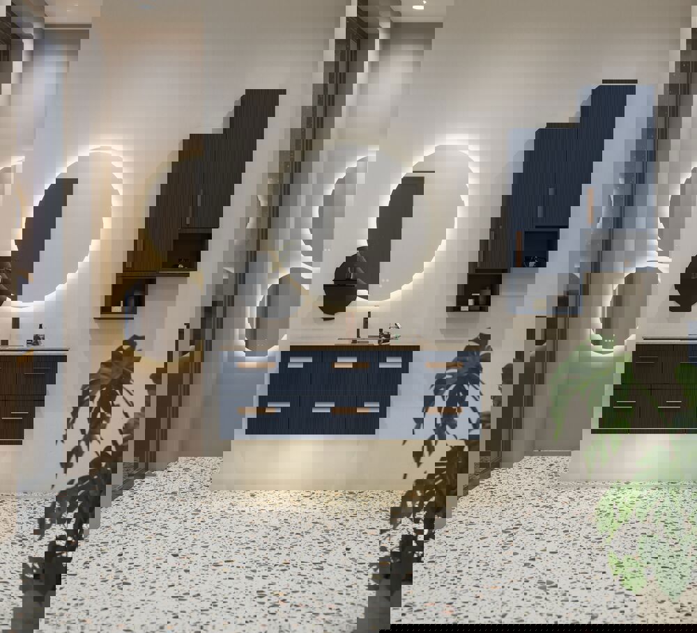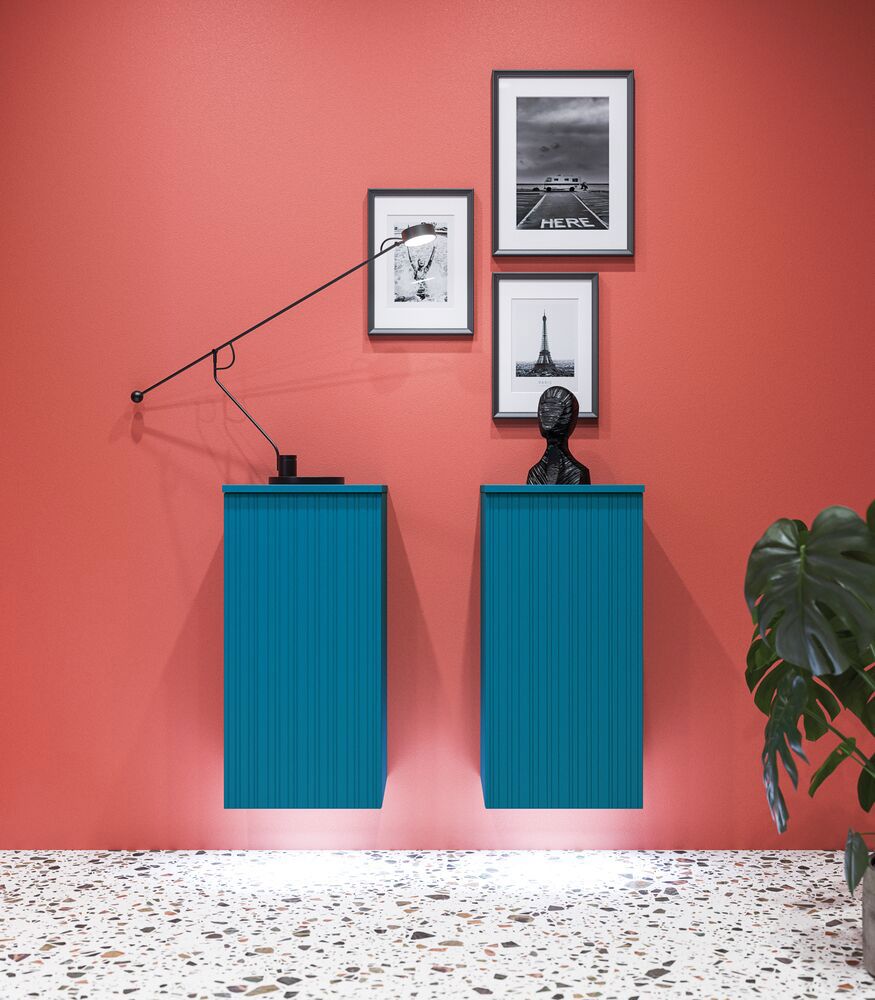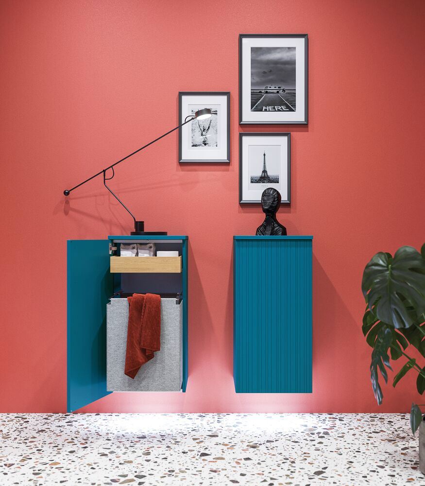 Add a stylish element to your bathroom with the base cabinet featuring a fluted front in Version B. This base cabinet has a width of 40 cm and a depth of 35 cm, and it comes with a pull-out tray and a laundry bag, providing you with optimal storage space for both cosmetics and laundry. The fluted front gives a distinctive and modern expression that will enhance any bathroom. Choose this base cabinet to unite aesthetics with functionality and ensure that all your bathroom items are organized and easily accessible. NB: There is a start-up fee (BI2) for products with bespoke colour. It is an one-off surcharge per bespoke colour regardless number of products. Remember to add the little practical things to your bathroom furniture that you will enjoy on a daily basis. For example, lights in drawers and cabinets, built-in electrical sockets and dimmed sensor lights under the furniture to guide night-time bathroom visits. Options are ordered at the same time as your furniture.