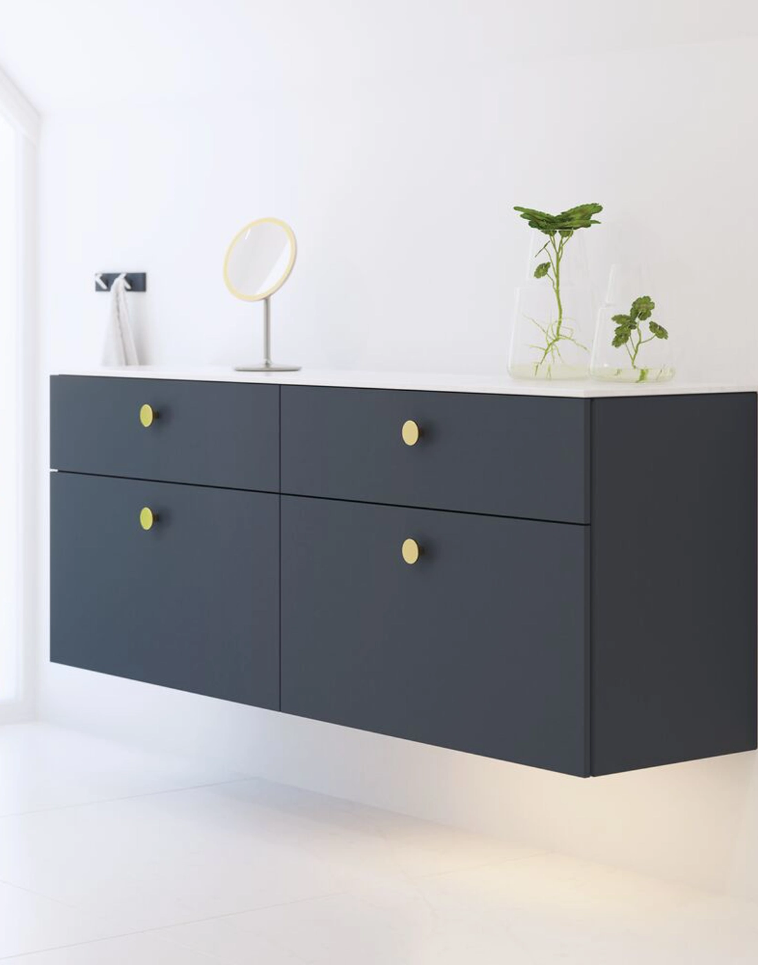 Button is a classic yet modern round knob style handle that gives your bathroom furniture the finishing touch. The round handle fits in with most bathroom styles and the Button knob is easy to grip, allowing you to access your items in cabinets and drawers with ease. The black Button handle is made from OceanIX Plastic, which is recycled plastic from, for example, used fishing nets.