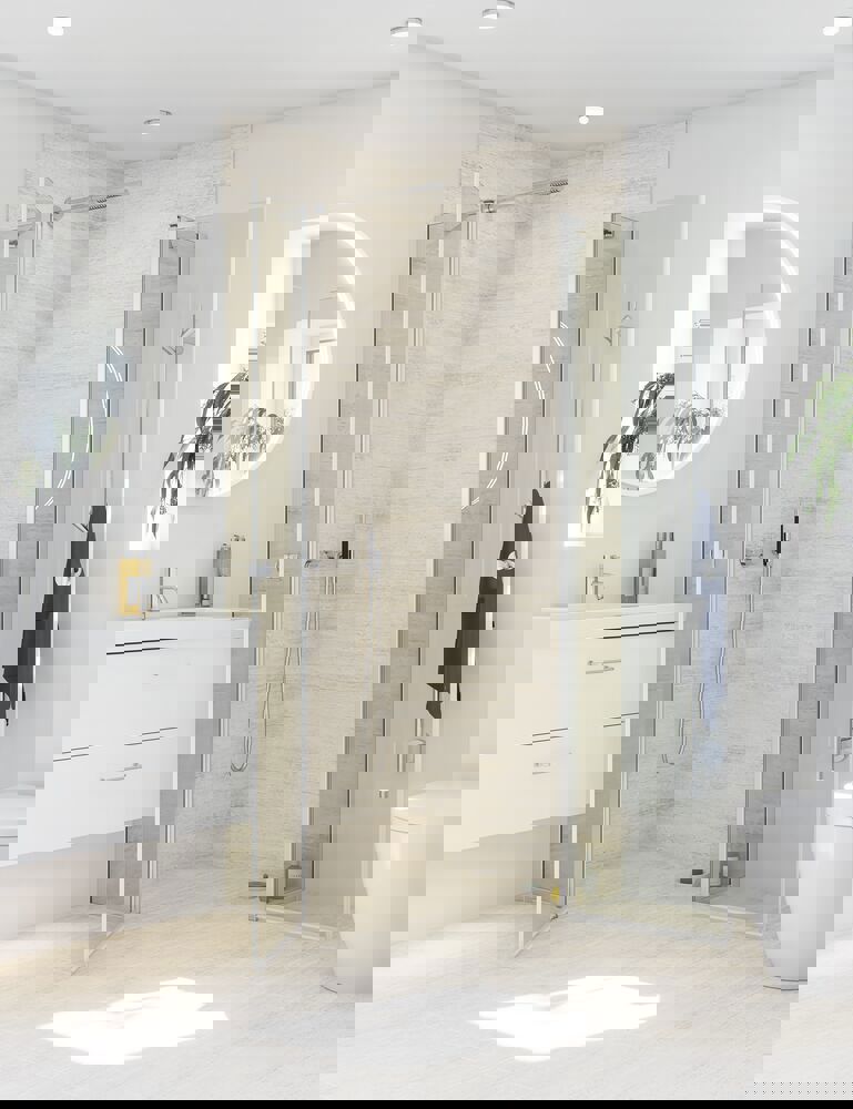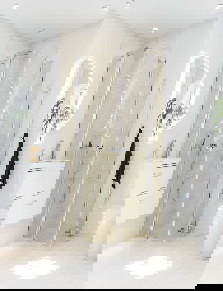 The hinged doors with in-line panel offer a stable and attractive enclosure around the shower, minimising water waste and creating a sense of privacy. You can furnish closer up to your shower door, which is handy if you have limited space. The hinged door can be pushed in without hitting the fittings when you're not using the shower, giving you more space in your bathroom. The glass is made of tempered safety glass and treated with EasyCare for long-lasting durability and safety. With Dansani's hinged doors with in-line panel, you get both an elegant and functional solution for your bathroom.