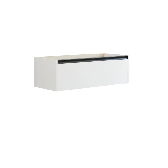 This base cabinet with integrated handle is the ideal choice for a modern bathroom in need of extra storage. The single drawer with no waste cut-out offers ample space for your products and the discreet design of the handle provides an elegant and harmonious finish. The black handle adds a refined touch and when choosing a bespoke color, the handle matches the cabinet color for a uniform look. Combine the cabinet with a vanity unit and countertop for a unique and asymmetrical bathroom design that oozes style and functionality. NB: There is a start-up fee (BI2) for products with bespoke colour. It is an one-off surcharge per bespoke colour regardless number of products. Remember to add the little practical things to your bathroom furniture that you will enjoy on a daily basis. For example, lights in drawers and cabinets, built-in electrical sockets and dimmed sensor lights under the furniture to guide night-time bathroom visits. Options are ordered at the same time as your furniture.