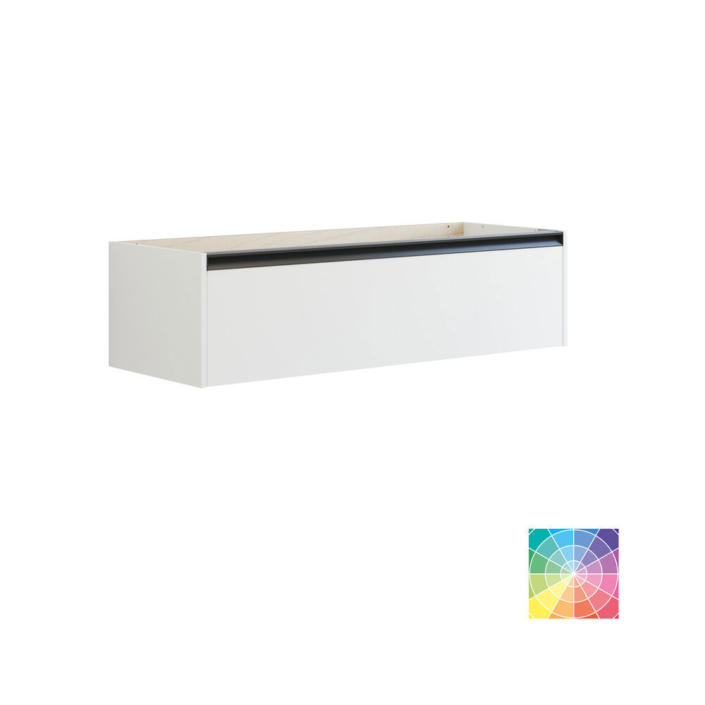 This base cabinet with integrated handle is the ideal choice for a modern bathroom in need of extra storage. The single drawer with no waste cut-out offers ample space for your products and the discreet design of the handle provides an elegant and harmonious finish. The black handle adds a refined touch and when choosing a bespoke color, the handle matches the cabinet color for a uniform look. Combine the cabinet with a vanity unit and countertop for a unique and asymmetrical bathroom design that oozes style and functionality. NB: There is a start-up fee (BI2) for products with bespoke colour. It is an one-off surcharge per bespoke colour regardless number of products. Remember to add the little practical things to your bathroom furniture that you will enjoy on a daily basis. For example, lights in drawers and cabinets, built-in electrical sockets and dimmed sensor lights under the furniture to guide night-time bathroom visits. Options are ordered at the same time as your furniture.