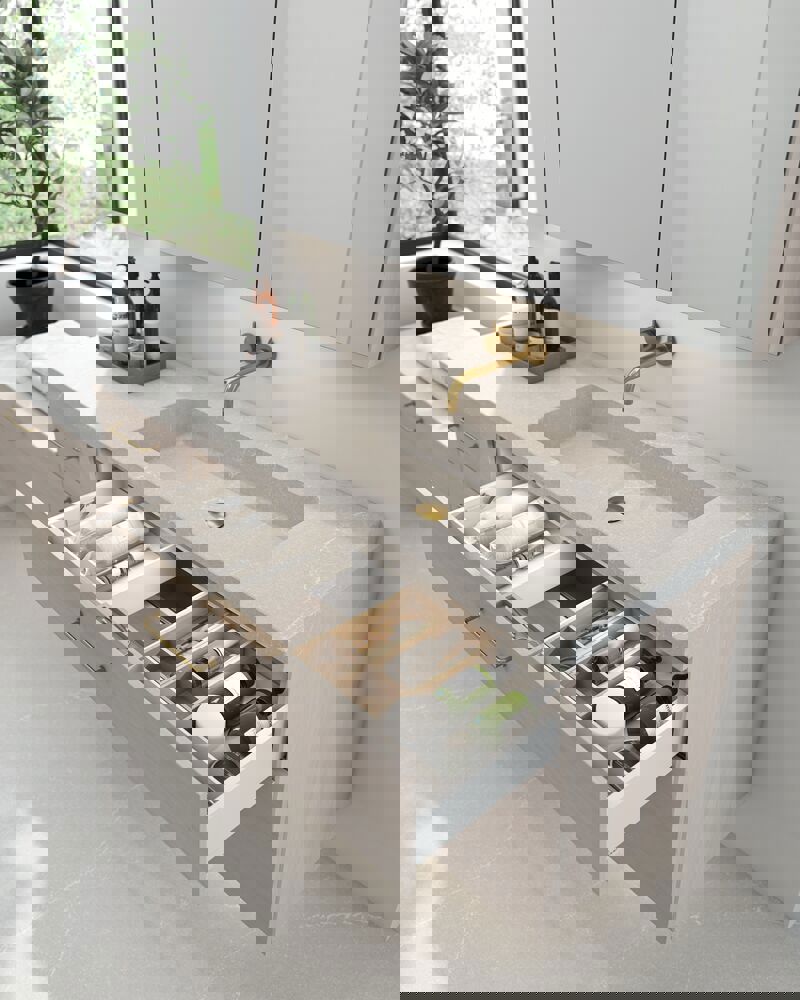 Dansani Calidris 1-drawer cabinets are the ideal solution for smart and stylish storage in the bathroom. With no space lost to wastes or drains, these cabinets are for those who opt for an asymmetrical solution with a made to measure basin, or for those who want extra storage elsewhere in the bathroom. The spacious drawer allows you to keep your bathroom organised and there's plenty of room for creams, shampoos and more. The Dansani Calidris cabinet gives you the opportunity to organise your bathroom in a uniform and beautiful way. NB: There is a start-up fee (BI2) for products with oak and bespoke colour. It is an one-off surcharge per oak and bespoke colour regardless number of products. Remember to add the little practical things to your bathroom furniture that you will enjoy on a daily basis. For example, lights in drawers and cabinets, built-in electrical sockets and dimmed sensor lights under the furniture to guide night-time bathroom visits. Options are ordered at the same time as your furniture.