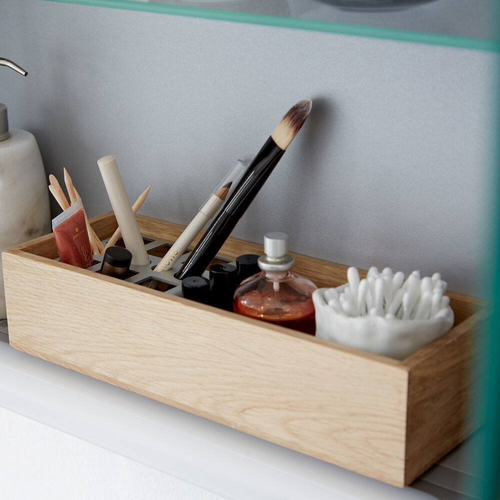 Dansani Calidris cabinets are a smart solution for bathrooms with limited space. With a narrow depth projection of only 16cm, you get plenty of storage space, even in smaller bathrooms. These cabinets combine space-saving design with functionality and style, making them ideal for organising toiletries, shampoos, creams and whatever else you need in the bathroom. Regardless of the size of the bathroom, Dansani Calidris cabinets add a practical and elegant storage solution. NB: There is a start-up fee (BI2) for products with oak and bespoke colour. It is an one-off surcharge per oak and bespoke colour regardless number of products. Remember to add the little practical things to your bathroom furniture that you will enjoy on a daily basis. For example, lights in drawers and cabinets, built-in electrical sockets and dimmed sensor lights under the furniture to guide night-time bathroom visits. Options are ordered at the same time as your furniture.