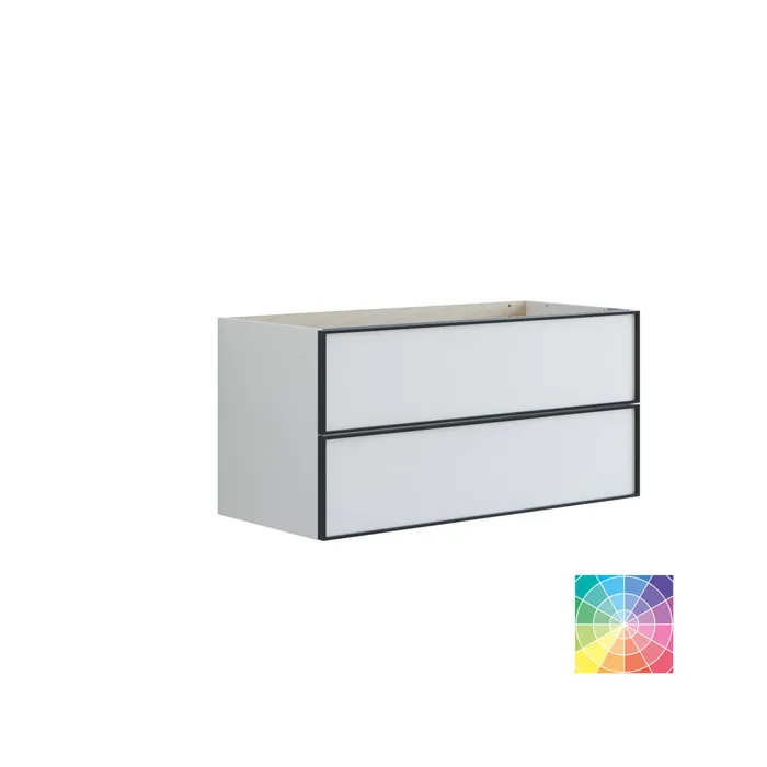 Upgrade your bathroom with cabinets that feature 2 drawers for smart storage and no waste cut-out. Standing at 48 cm tall, these cabinets showcase a stylish black frame that adds a modern and refined look. They are ideal for pairing with a vanity unit and a countertop with a freestanding basin. The black frame provides not only ample storage space but also an attractive design solution. Choose from various colors to create the perfect match for your decor. NB: There is a start-up fee (BI2) for products with bespoke colour. It is an one-off surcharge per bespoke colour regardless number of products. Remember to add the little practical things to your bathroom furniture that you will enjoy on a daily basis. For example, lights in drawers and cabinets, built-in electrical sockets and dimmed sensor lights under the furniture to guide night-time bathroom visits. Options are ordered at the same time as your furniture.