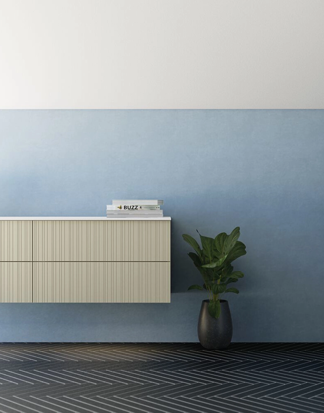 Cabinet with 2 drawers, fluted