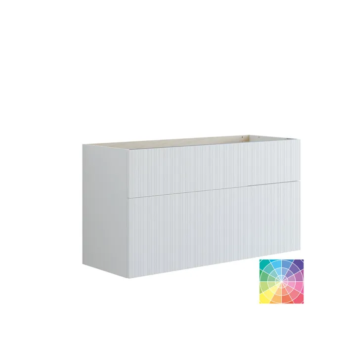Create a stylish bathroom with cabinets that feature 2 drawers and a height of 64 cm. The tall bottom drawer offers ample space for storing your bathroom essentials, while the fluted front adds a modern and unique detail to the design. These cabinets can be used independently or combined with a vanity unit and a countertop with a freestanding sink to achieve an exciting asymmetrical look. You can choose from various colors to customize the cabinets to your personal style. Cabinets with 2 drawers provide both functionality and aesthetic appeal, making your bathroom more elegant and organized. NB: There is a start-up fee (BI2) for products with bespoke colour. It is an one-off surcharge per bespoke colour regardless number of products. Remember to add the little practical things to your bathroom furniture that you will enjoy on a daily basis. For example, lights in drawers and cabinets, built-in electrical sockets and dimmed sensor lights under the furniture to guide night-time bathroom visits. Options are ordered at the same time as your furniture.