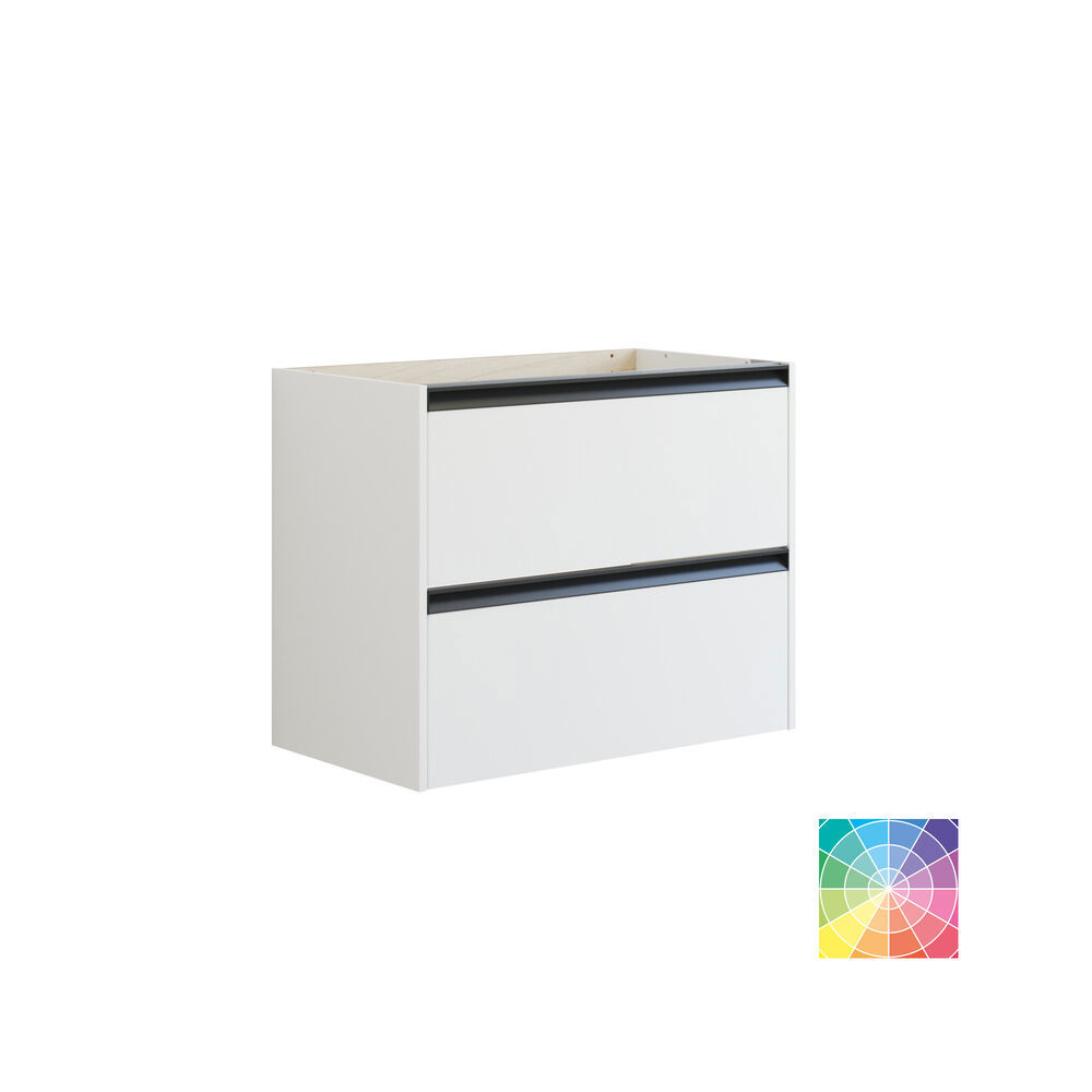 Optimize your bathroom decor with a base cabinet featuring an integrated handle and two drawers. The smart drawers provide easy access to your items, while the sleek design creates a modern expression. The harmonious color ensures that the cabinet fits perfectly into your bathroom. Whether it stands alone with a countertop or as part of a complete solution with a vanity unit, this cabinet will add both functionality and elegance to the space. NB: There is a start-up fee (BI2) for products with bespoke colour. It is an one-off surcharge per bespoke colour regardless number of products. Remember to add the little practical things to your bathroom furniture that you will enjoy on a daily basis. For example, lights in drawers and cabinets, built-in electrical sockets and dimmed sensor lights under the furniture to guide night-time bathroom visits. Options are ordered at the same time as your furniture.