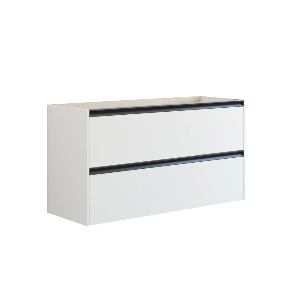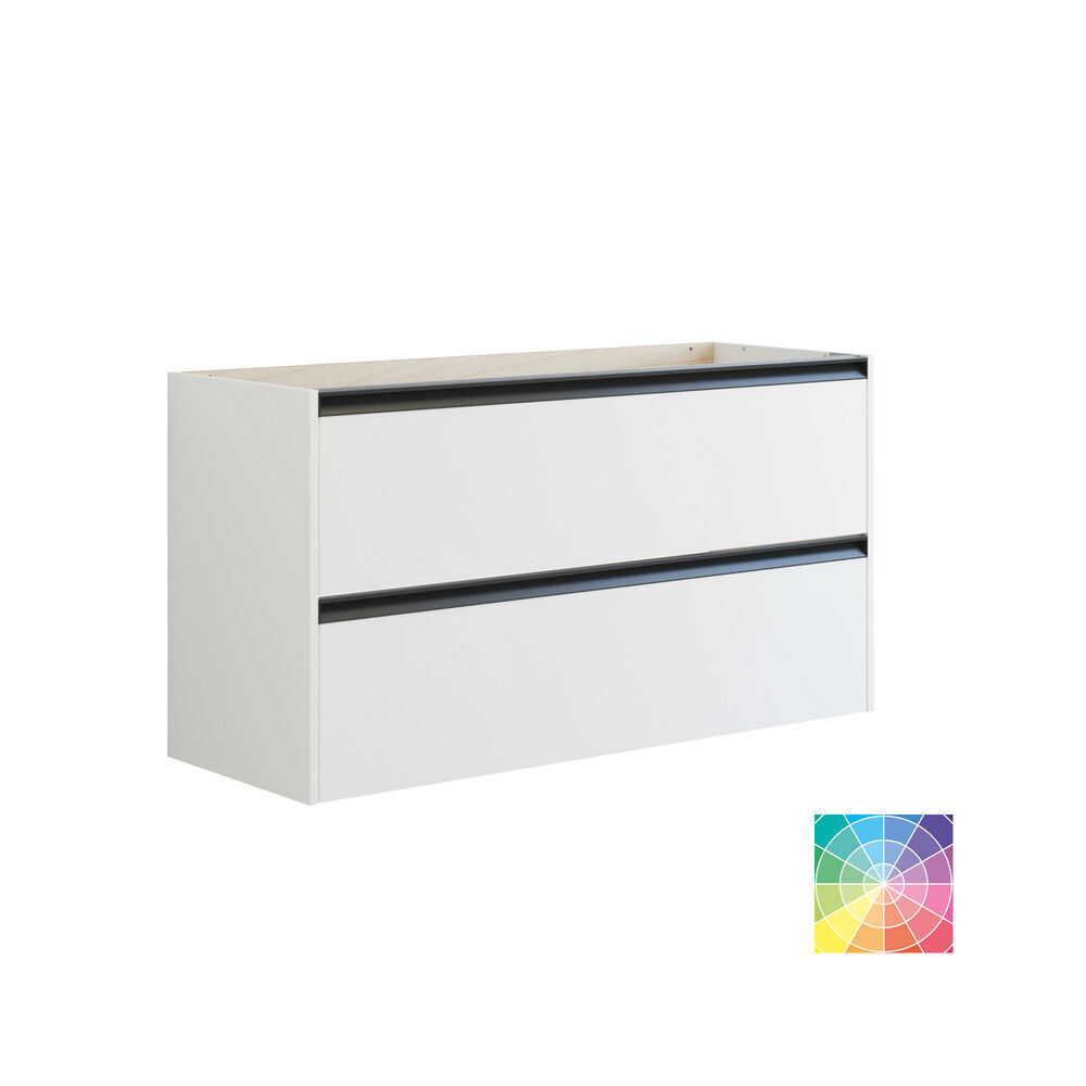 Optimize your bathroom decor with a base cabinet featuring an integrated handle and two drawers. The smart drawers provide easy access to your items, while the sleek design creates a modern expression. The harmonious color ensures that the cabinet fits perfectly into your bathroom. Whether it stands alone with a countertop or as part of a complete solution with a vanity unit, this cabinet will add both functionality and elegance to the space. NB: There is a start-up fee (BI2) for products with bespoke colour. It is an one-off surcharge per bespoke colour regardless number of products. Remember to add the little practical things to your bathroom furniture that you will enjoy on a daily basis. For example, lights in drawers and cabinets, built-in electrical sockets and dimmed sensor lights under the furniture to guide night-time bathroom visits. Options are ordered at the same time as your furniture.