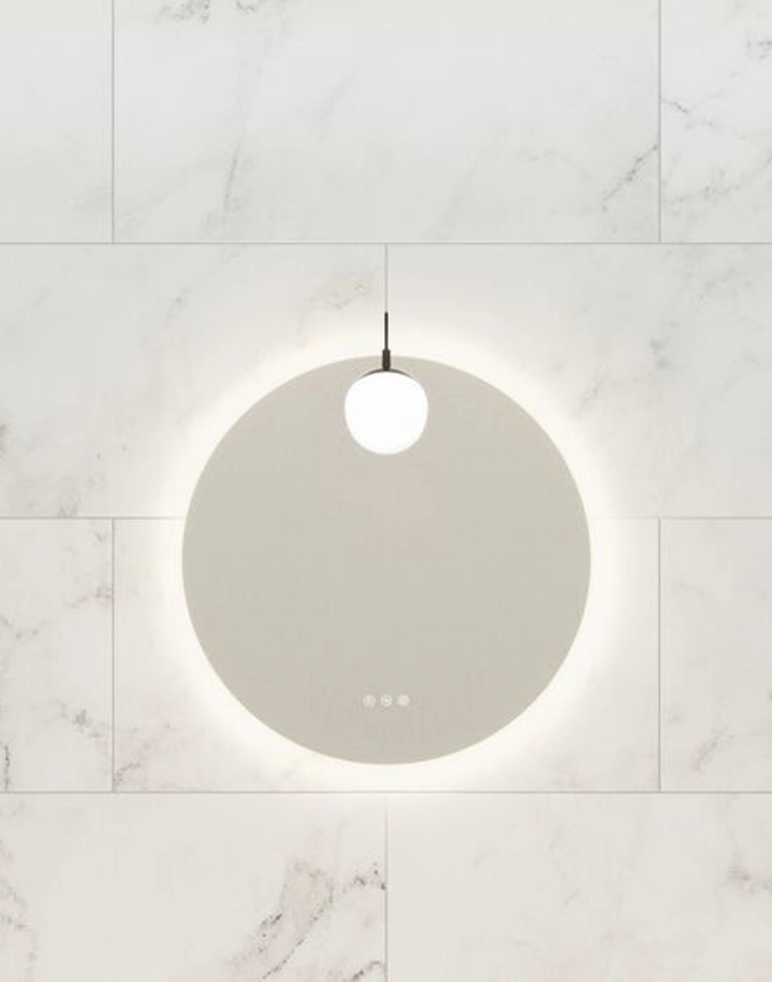 Corona is an elegant, round mirror with beautiful backlighting. The Corona mirror is available here in a version with light control, which means you can adjust both the strength and temperature of the lighting in your bathroom. The beautiful light behind the Corona mirror will adjust depending on the setting you choose. Use the Corona mirror in your bathroom or elsewhere in your home.