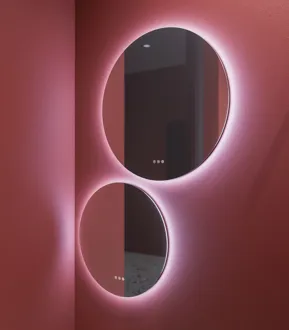 Corona is an elegant, round mirror with beautiful backlighting. The Corona mirror is available here in a version with light control, which means you can adjust both the strength and temperature of the lighting in your bathroom. The beautiful light behind the Corona mirror will adjust depending on the setting you choose. Use the Corona mirror in your bathroom or elsewhere in your home. You can buy a pre-fitted anti-mist pad for the mirror to prevent the mirror from fogging up when you shower.
