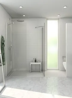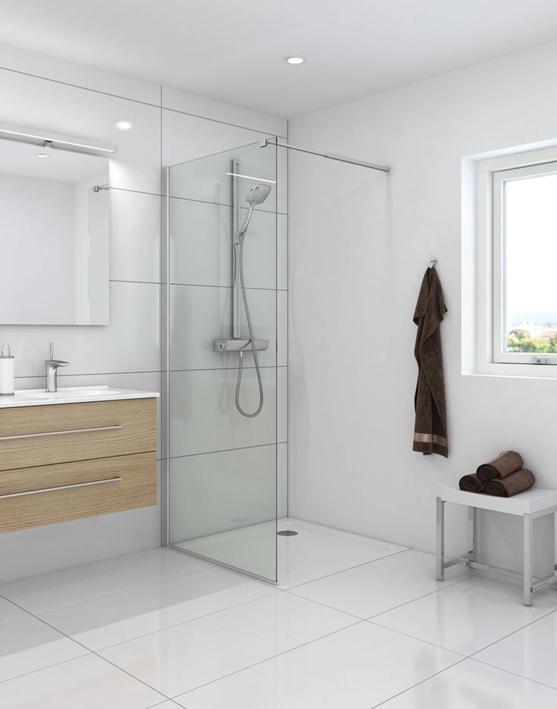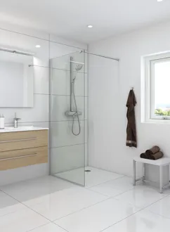 The fixed panels are designed with a focus on creating a spacious and stylish shower area that can be fully customised to your personal style and the dcor of your bathroom. Our fixed panels can be combined with other shower panels or shower doors, giving you the opportunity to create a solution that fits perfectly into your bathroom. Maybe you have a lot of space and can create a walk-in shower? Or maybe you want to combine the fixed panel with a hinged door for a stable and safe solution? Whatever you choose, you can find the solution that suits you best. The glass in the fixed panels is treated with EasyCare, a special coating that repels water and soap residue, making cleaning much easier. The glass is also tempered, and the strong construction and solid materials ensure that the walls are stable and reliable.