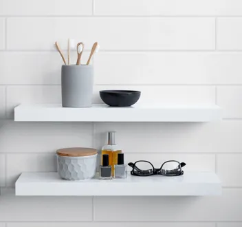 Add a touch of elegance and functionality to your bathroom with our floating shelves. These modern shelves allow you to display your favourite items or store your daily essentials with ease. Create a light and airy feeling with our floating shelves that perfectly match your decor.