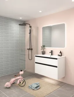 The Glow mirror from Dansani is an innovative solution that combines functionality and looks. With its in-built dimming function, it allows you to adjust the light to your needs and create the perfect atmosphere in your bathroom. The mirror is available in five different widths, making it easy to find the right size for your space. The sleek and modern design aesthetic adds an elegant touch to any decor. With the Glow mirror, you not only get a practical bathroom mirror, but also a stylish element that enhances your everyday space. You can buy a anti-mist pad for the mirror to prevent the mirror from fogging up when you shower. You must install the anti-mist pad yourself.