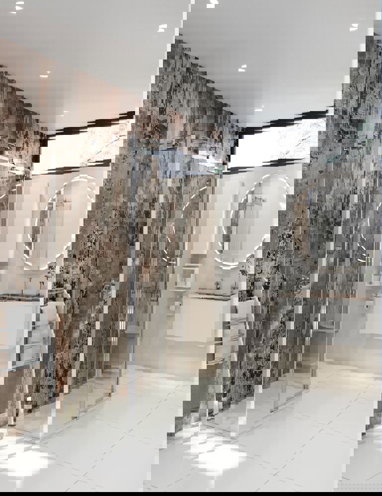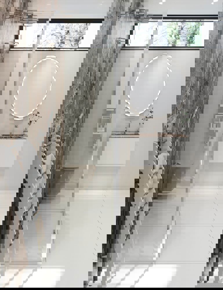 The Hoop mirror is inspired by floating frames, where the frame hovers freely around the mirror, creating a dynamic and light aesthetic. The curved inner frame directs light from the back forward, providing soft, glare-free light that spreads evenly throughout the room. With the built-in light control, you can easily adjust the brightness to suit your needs, whether it's bright light for makeup or soft light for relaxation. The Hoop mirror comes standard with a black frame, but you can choose to have the outer frame painted in a custom color to match your decor. You can buy a pre-fitted anti-mist pad for the mirror to prevent the mirror from fogging up when you shower. NB: There is a start-up fee (BI2) for products with bespoke colour. It is an one-off surcharge per bespoke colour regardless number of products.
