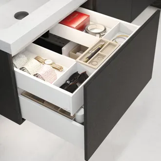 Optimise your storage with the Dansani Calidris internal drawer that fits perfectly in your vanity unit. This smart addition gives you extra space to organise your items without taking up space in the rest of your vanity unit or on the shelves of your cabinets. The inner drawer is not very tall, but it can organise many smaller items and provide a better overview of the contents of the drawer in the vanity unit.