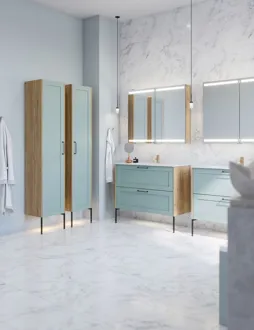 The Level mirror cabinet gives you plenty of extra storage in your bathroom. Inside the mirror cabinet you'll find convenient shelves, a magnifying mirror, a magnetic accessory holder, a metal shelf and an electrical socket, giving you plenty of space for your toothbrush, shaver, creams, deodorant and much more. The mirror cabinet has top and bottom lights running the full cabinet width that can be controlled in both strength and colour, so you can get the right light setting for your needs. NB: There is a start-up fee (BI2) for products with bespoke colour. It is an one-off surcharge per bespoke colour regardless number of products.