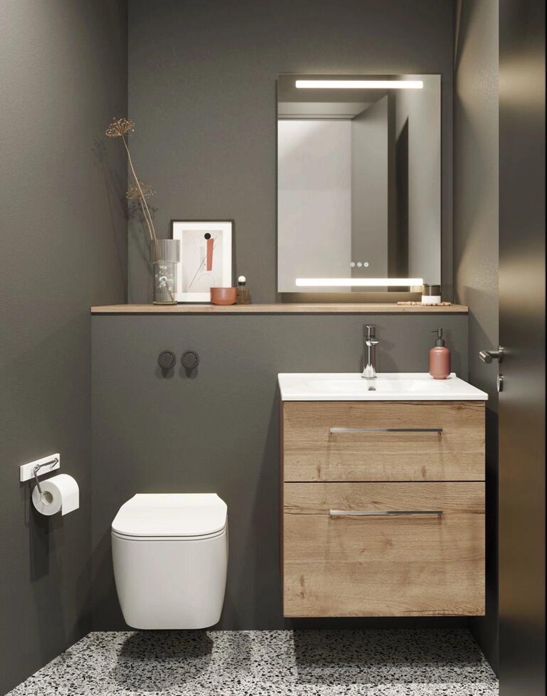 Level mirror with lighting and touch control