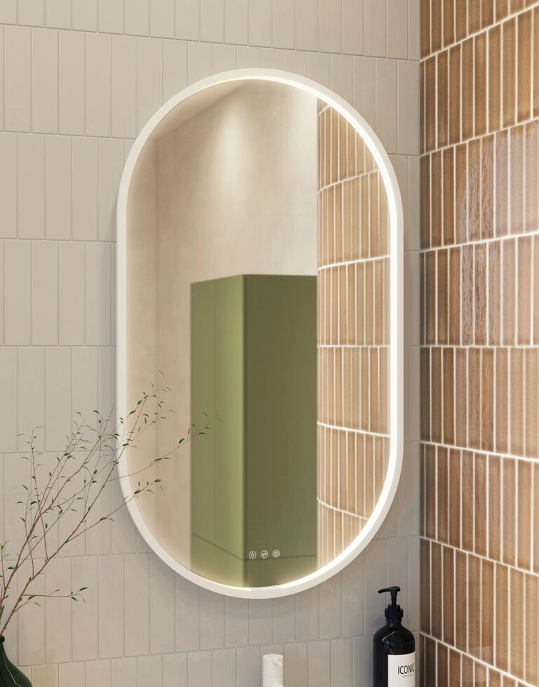 The Moon mirror is a beautiful and elegant framed mirror that holds its own as a decorative element in any interior space. The mirror is oval and softens the otherwise sharper edges in the bathroom. The mirror's robust frame is made of strong materials which gives the mirror a modern and stylish look. You can also control the strength and warmth of the light as the Moon oval mirror is available with light control. The frame around the mirror is available in black, white and brass so an option can be chosen to tie in with your personal style and decor. Perfect for the bathroom or bedroom, with the Moon Oval Mirror you can create a space with elegance and timeless beauty. You can buy a pre-fitted anti-mist pad for the mirror to prevent the mirror from fogging up when you shower.