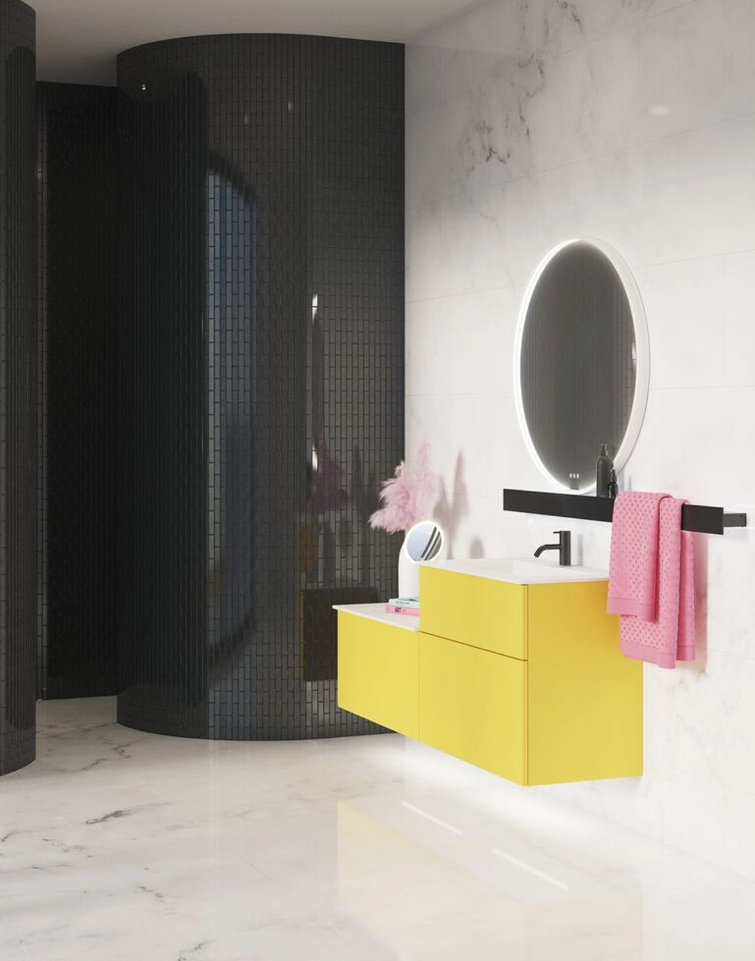 The Moon mirror is a beautiful and elegant round mirror with a frame that makes the mirror a decorative element in any room. The mirror's frame is made of quality materials that give the mirror a modern and stylish look. You can also control the strength and colour of the light, as the Moon mirror is available with light control. The frame around the mirror is available in several different finishes such as black, white and brass, so it can be changed to suit your personal style and decor. Perfect for the bathroom or bedroom, the Moon mirror allows you to create a room with elegance and timeless beauty. You can buy a pre-fitted anti-mist pad for the mirror to prevent the mirror from fogging up when you shower.