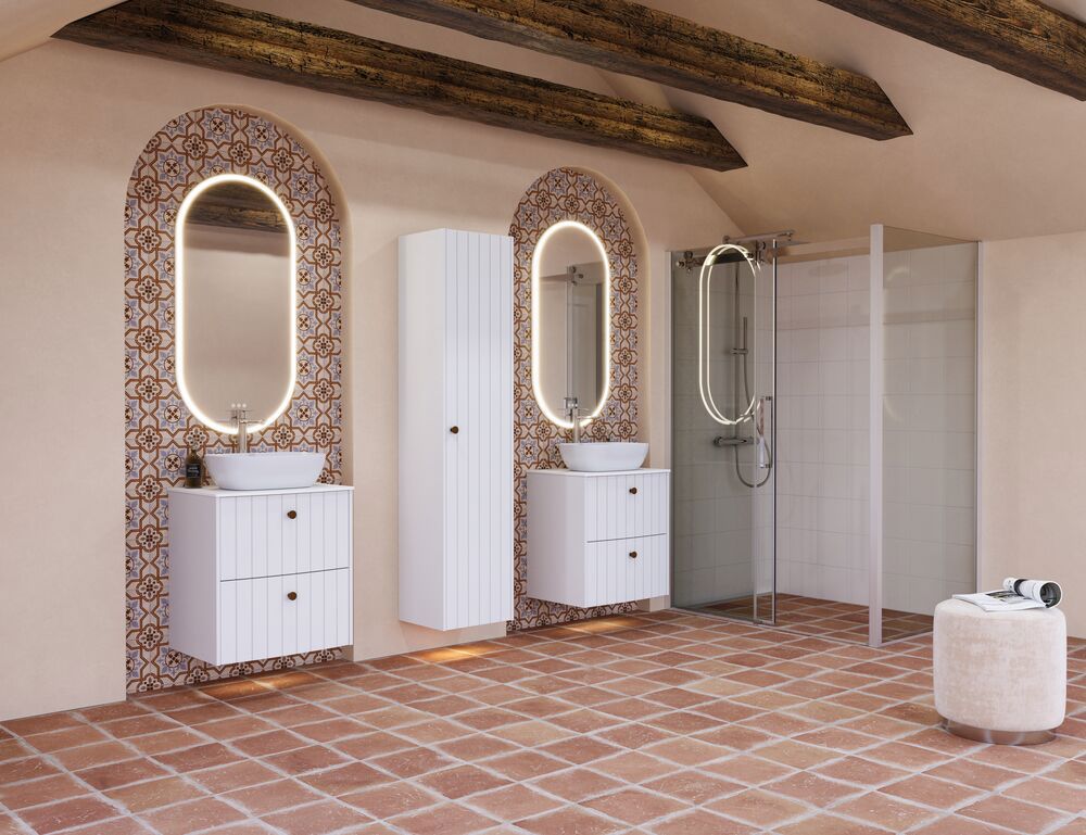 The Natura handle is an elegant wooden knob made from lacquered oak or walnut, designed to add warmth and character to the bathroom. With its natural wood finish, Natura serves as a beautiful contrast to both white furniture and those in more unique colors, where it highlights and complements the color choice. The handle gives an inviting, organic touch that creates harmony between the furniture and the other elements of the bathroom, regardless of style and decor.