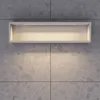 Create a balance between functionality and aesthetics with the 20 cm high open wall units from Dansani Calidris. These elegant units are custom-made for the bathroom, where they not only offer practical storage but also create a stylish space to display your personal items. The compact size of 20 cm makes these wall units ideal for maximising the space in your bathroom without compromising on design. Use them to organise towels, toiletries or to showcase decorative elements and create a personal touch. To emphasise the beauty of your displayed items, you can add interior lighting to these wall units. This adds a subtle illumination that highlights your favourite elements and creates a warm and inviting atmosphere in your bathroom. NB: There is a start-up fee (BI2) for products with oak and bespoke colour. It is an one-off surcharge per oak and bespoke colour regardless number of products.
