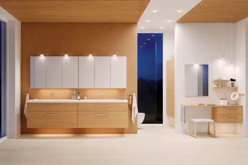 The Dansani Calidris Primo mirror cabinet is designed to impress with its beautiful interior consisting of mirrored panels, plenty of extra storage and beautiful adjustable lighting. The mirror cabinet comes with a magnifying mirror to give you a clear and sharp view when plucking your eyebrows, and the included magnetic accessory holder can be used to organise your tweezers or nail clippers. Plus, there's a clever electrical socket built into the mirror cabinet so you can plug in your electrical devices. Give your bathroom the ultimate boost with the Dansani Calidris Primo mirror cabinet - a fusion of elegance and functionality that will make your morning routine a pleasure. NB: There is a start-up fee (BI2) for products with oak and bespoke colour. It is an one-off surcharge per oak and bespoke colour regardless number of products.