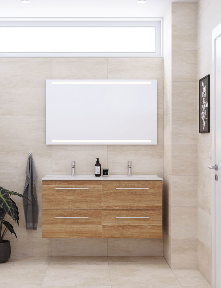 The Repeat mirror is a stylish and practical choice for your bathroom. The mirror has integrated lighting both at the top and bottom, creating optimal lighting in the room. The Repeat mirror is available with or without sensor control. If you choose the sensor model, you can easily turn the light on and off without touching the mirror. The mirror is of incredibly high quality, making it both durable and sustainable. You can buy a anti-mist pad for the mirror to prevent the mirror from fogging up when you shower. You must install the anti-mist pad yourself.