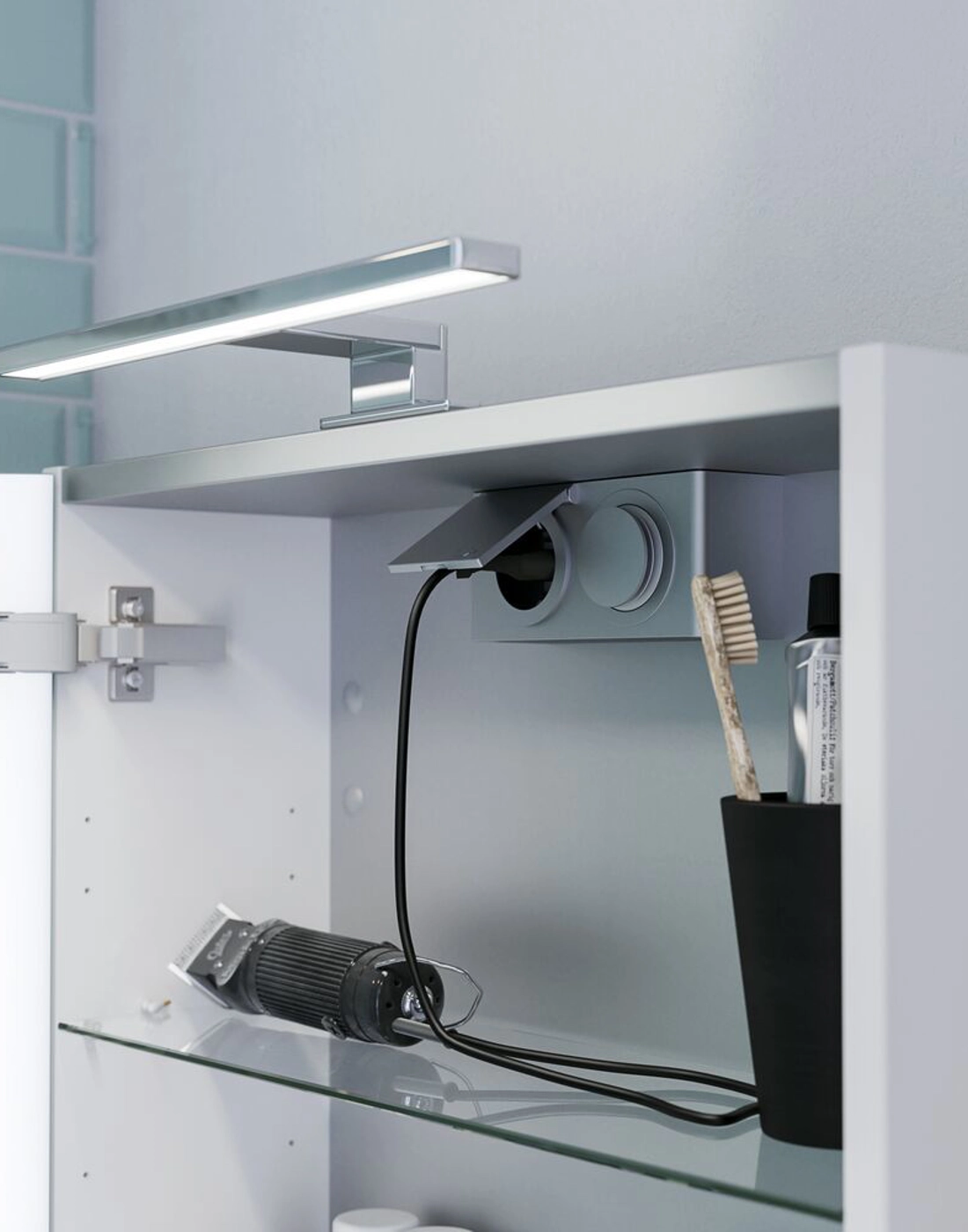 The Select mirror cabinet is much more than just a mirror cabinet - it's your personal bathroom upgrade. Choose your own lights and create the perfect lighting solution to start your day in style. With the mirror cabinet, you get plenty of storage and a socket inside the mirror cabinet for your electrical devices. Experience convenience and elegance in one with the Select mirror cabinet - your daily companion for a great start to the day.