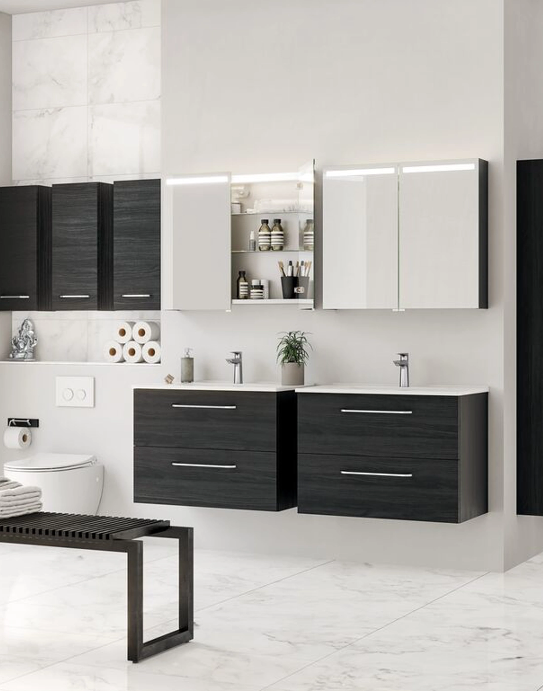 Create elegance and functionality in your bathroom with this Dansani Mido+ tall cabinet. The tall cabinet gives you plenty of extra storage space in the bathroom, and in this cabinet you'll find 1 wooden shelf and 4 beautiful glass shelves. A tall cabinet is a great solution if you need extra storage in the bathroom, and here you can also create a sense of luxury in your bathroom. With great Danish design and smart storage options, this tall cabinet is an ideal addition to any stylish bathroom.
