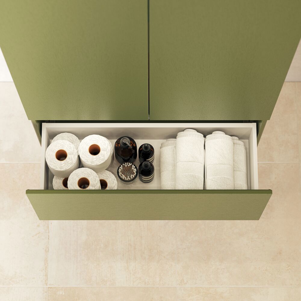 Bathroom storage becomes simple and stylish with Dansani Calidris tall units. These units are not only functional, but also look good and fit perfectly into modern bathrooms. With smart shelves and compartments, the Calidris tall units allow you to arrange everything from towels and toiletries to beauty products in an organised manner. The elegant design and clean lines of the tall units bring a sense of order and harmony to the bathroom. NB: There is a start-up fee (BI2) for products with oak and bespoke colour. It is an one-off surcharge per oak and bespoke colour regardless number of products. Remember to add the little practical things to your bathroom furniture that you will enjoy on a daily basis. For example, lights in drawers and cabinets, built-in electrical sockets and dimmed sensor lights under the furniture to guide night-time bathroom visits. Options are ordered at the same time as your furniture.