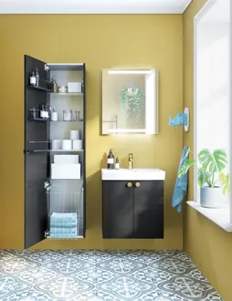 Make use of every bit of space in your bathroom with the Dansani Mido+ tall cabinet. With a tall cabinet you can fit all your essentials, so if you have the space, we really recommend a tall cabinet for your bathroom. In this tall cabinet you'll find 1 wooden shelf, 4 glass shelves and 3 shelves on the door itself, giving you plenty of space and the opportunity to perfectly organise your bathroom. Experience a new feeling of order and design in your bathroom with the Dansani Mido+ tall cabinet.