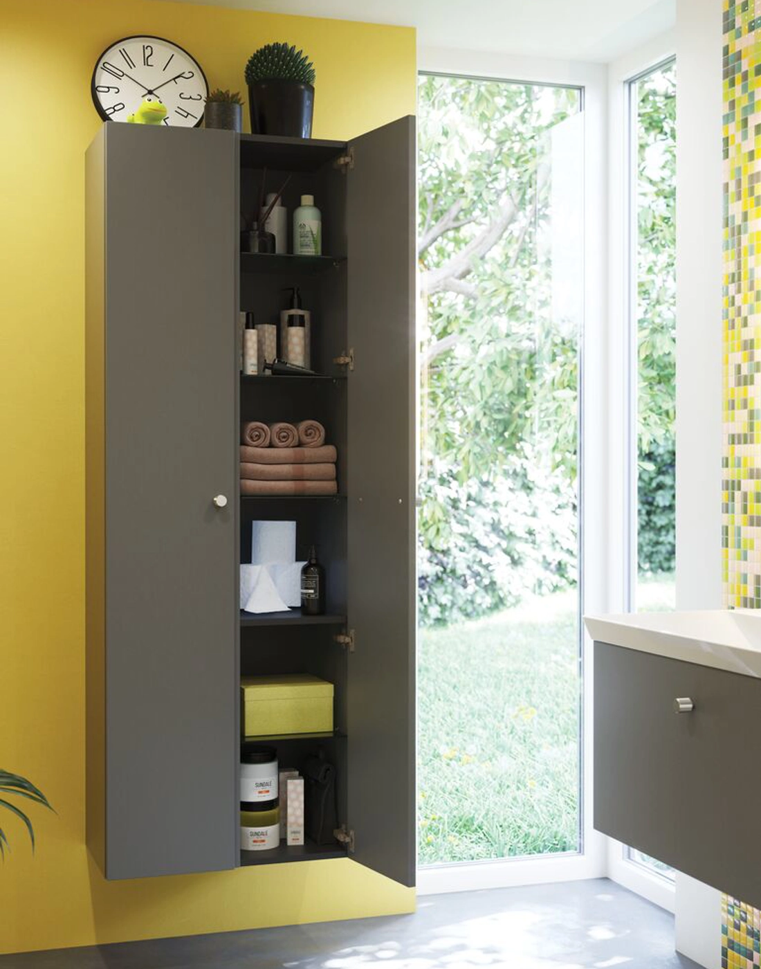 Make use of every bit of space in your bathroom with the Dansani Mido+ tall cabinet. With a tall cabinet you can fit all your essentials, so if you have the space, we really recommend a tall cabinet for your bathroom. In this tall cabinet you'll find 1 wooden shelf, 4 glass shelves and 3 shelves on the door itself, giving you plenty of space and the opportunity to perfectly organise your bathroom. Experience a new feeling of order and design in your bathroom with the Dansani Mido+ tall cabinet.