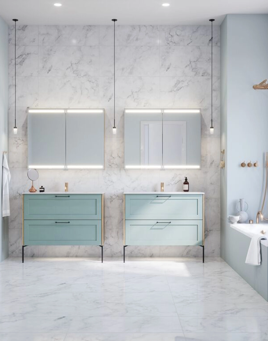 The tall cabinet with a classic frame front in Version B is designed to provide both functionality and style. With one wooden shelf and three shortened glass shelves, this cabinet is ideal for storing various bathroom items. The three wooden trays on the door offer extra storage for smaller items like cosmetics and medicine, while the two glass shelves are perfect for displaying your favorite products. The classic frame front style adds a timeless look to your bathroom. NB: There is a start-up fee (BI2) for products with bespoke colour. It is an one-off surcharge per bespoke colour regardless number of products. Remember to add the little practical things to your bathroom furniture that you will enjoy on a daily basis. For example, lights in drawers and cabinets, built-in electrical sockets and dimmed sensor lights under the furniture to guide night-time bathroom visits. Options are ordered at the same time as your furniture.