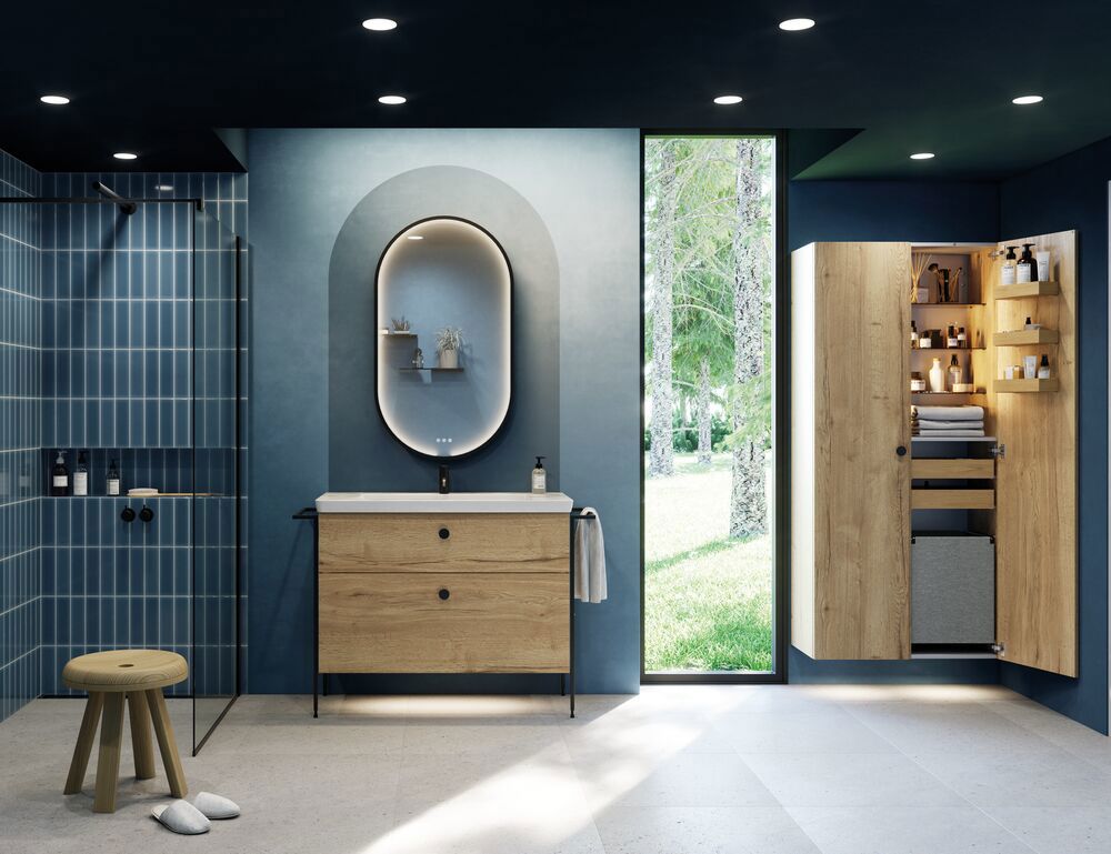 Get the best out of your bathroom with the tall cabinet with 40 cm width and smooth front in Version C. This tall cabinet features a wooden shelf, three shortened glass shelves, three wooden trays on the door, two pull-out trays, and a practical laundry bag. This thoughtful storage solution allows you to organize everything from towels to laundry, while the smooth front and stylish design add an elegant touch to the room. With this tall cabinet in Version C, you get a functional and beautiful solution that fits perfectly into any bathroom. NB: There is a start-up fee (BI2) for products with bespoke colour. It is an one-off surcharge per bespoke colour regardless number of products. Remember to add the little practical things to your bathroom furniture that you will enjoy on a daily basis. For example, lights in drawers and cabinets, built-in electrical sockets and dimmed sensor lights under the furniture to guide night-time bathroom visits. Options are ordered at the same time as your furniture.